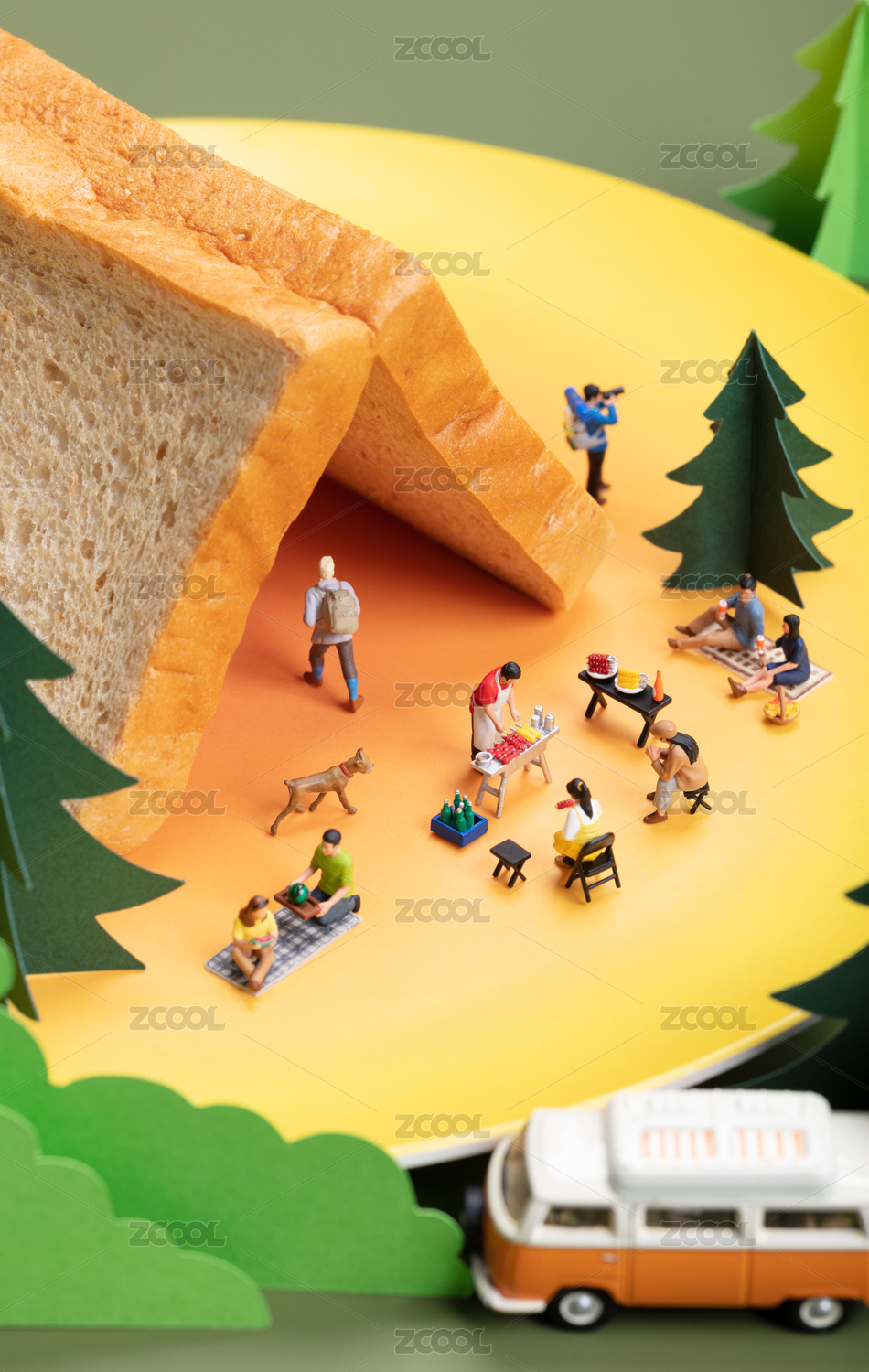 微縮創(chuàng)意在吐司面包下燒烤野餐