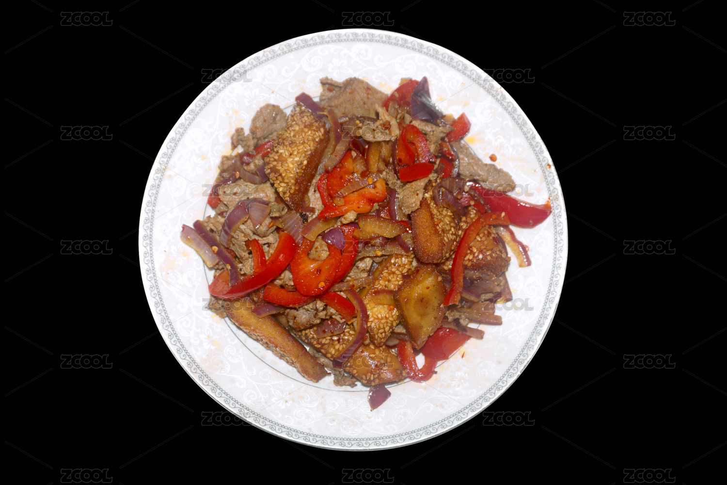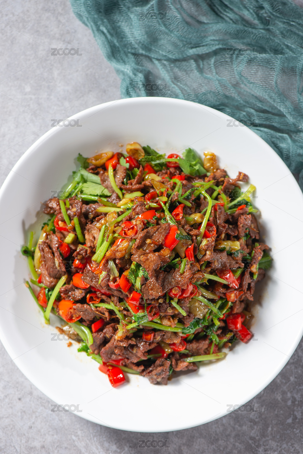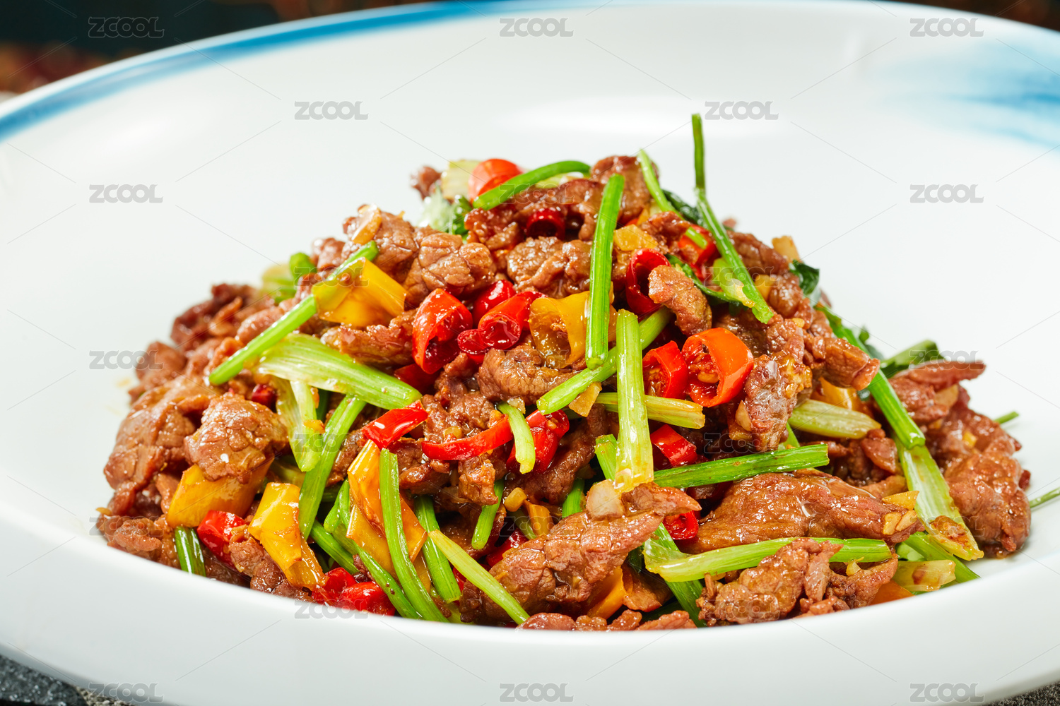 餐盤里的辣椒炒牛肉
