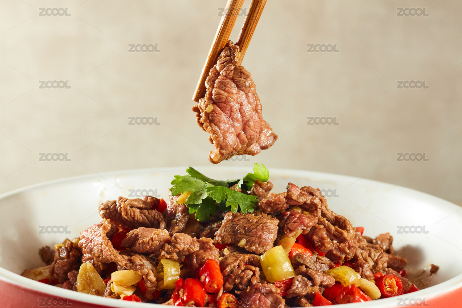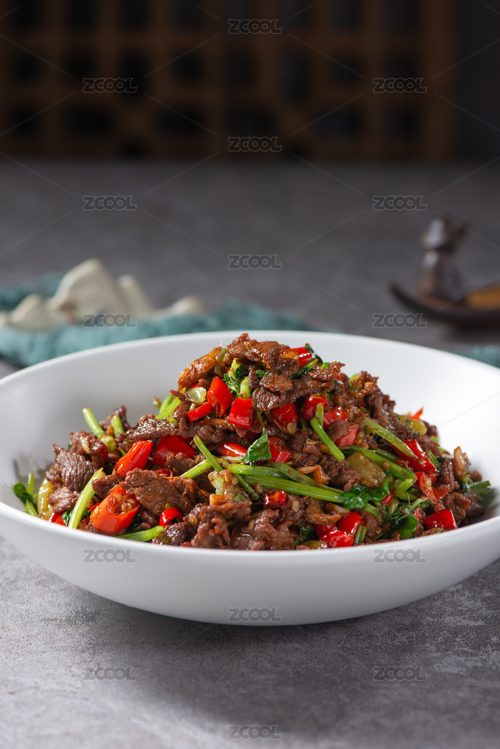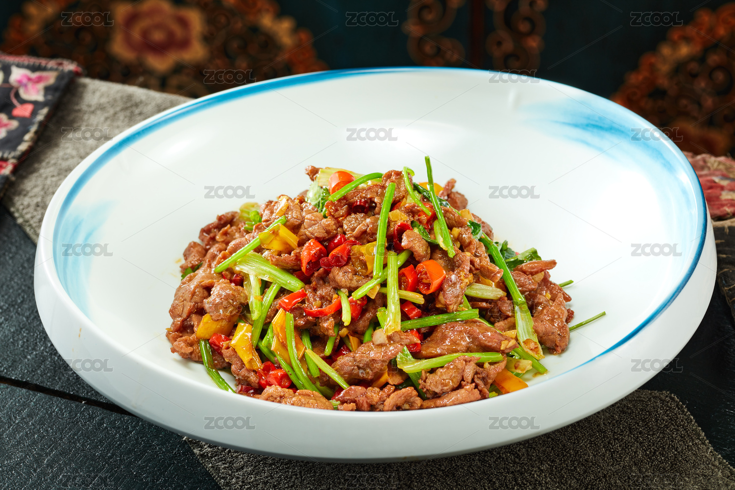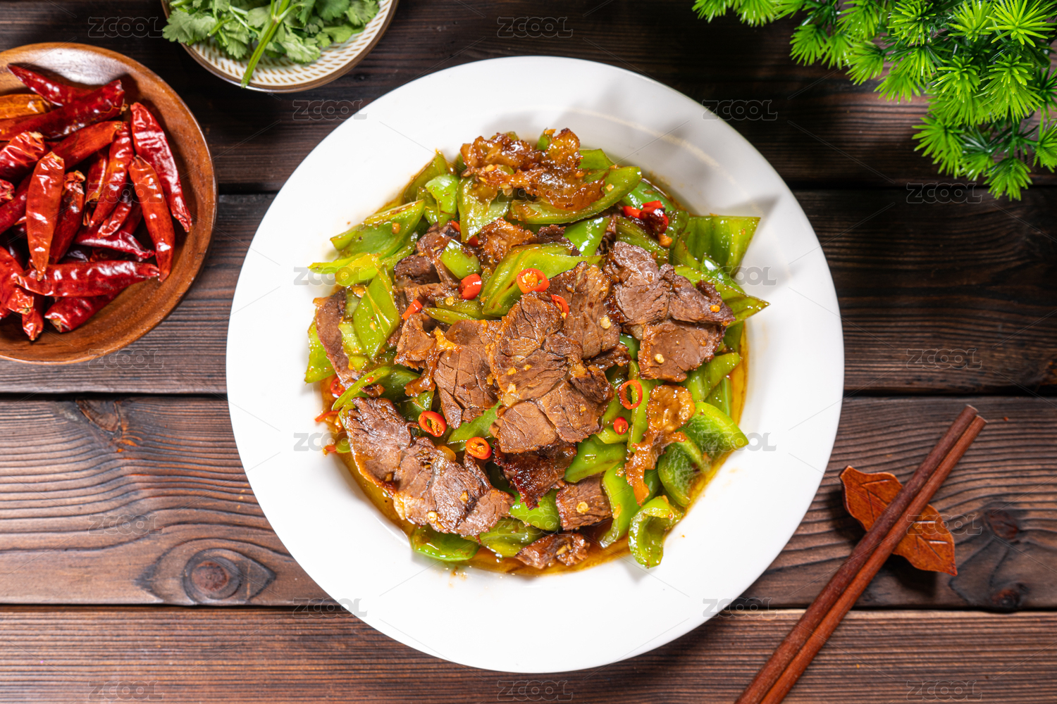 餐盤里的辣椒炒牛肉