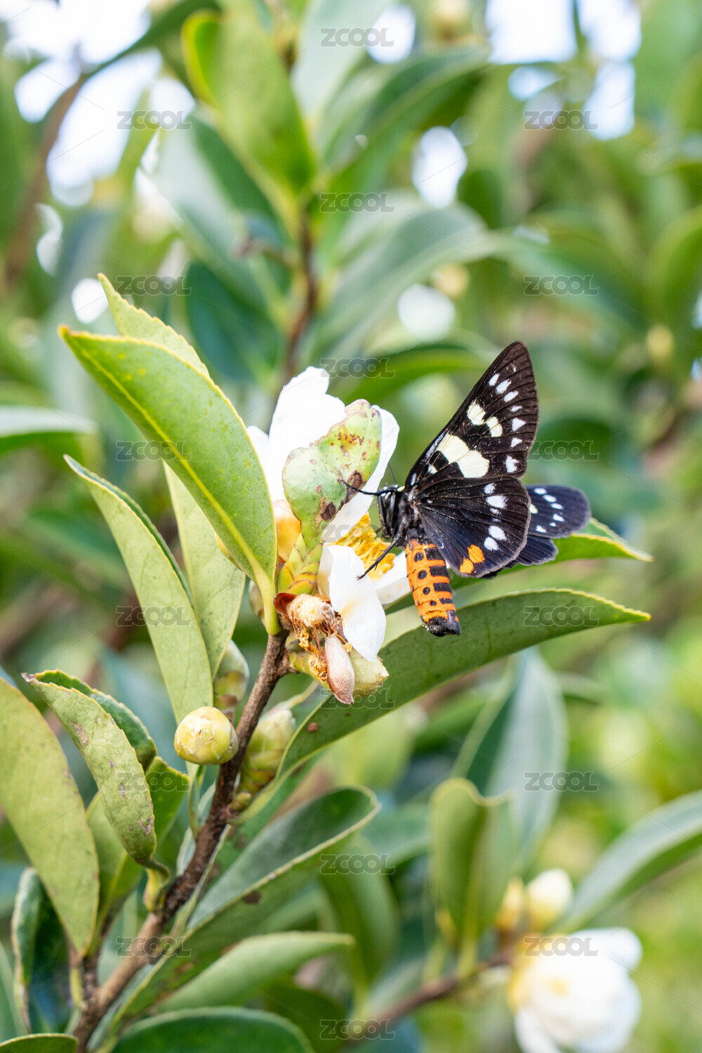 蝴蝶在山柚花上采蜜