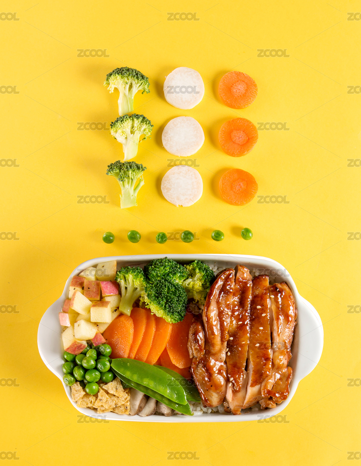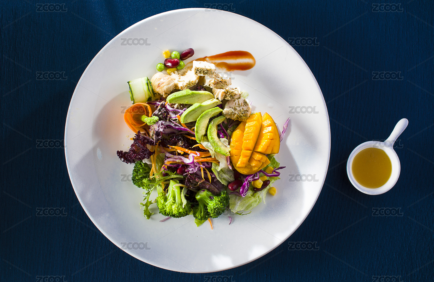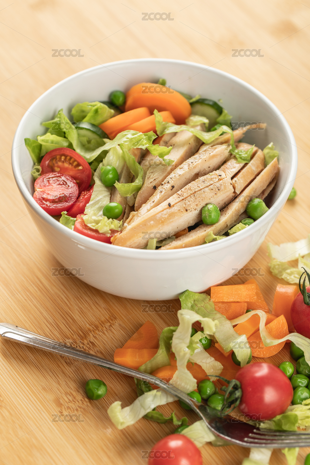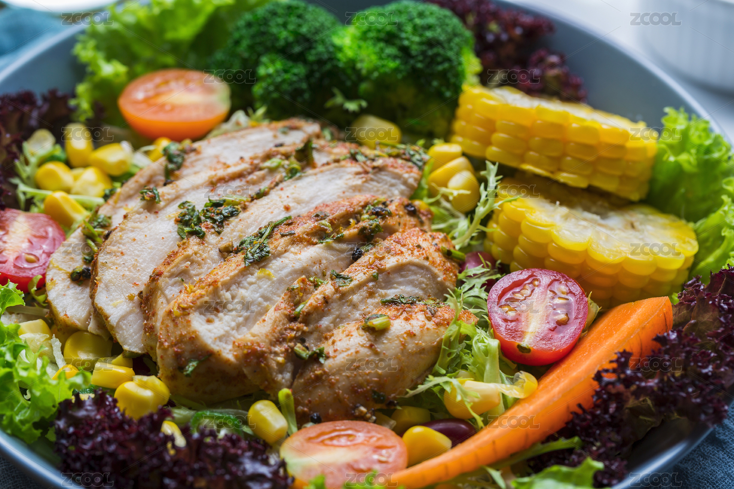 藍(lán)色背景下的雞肉沙拉減脂健身套餐