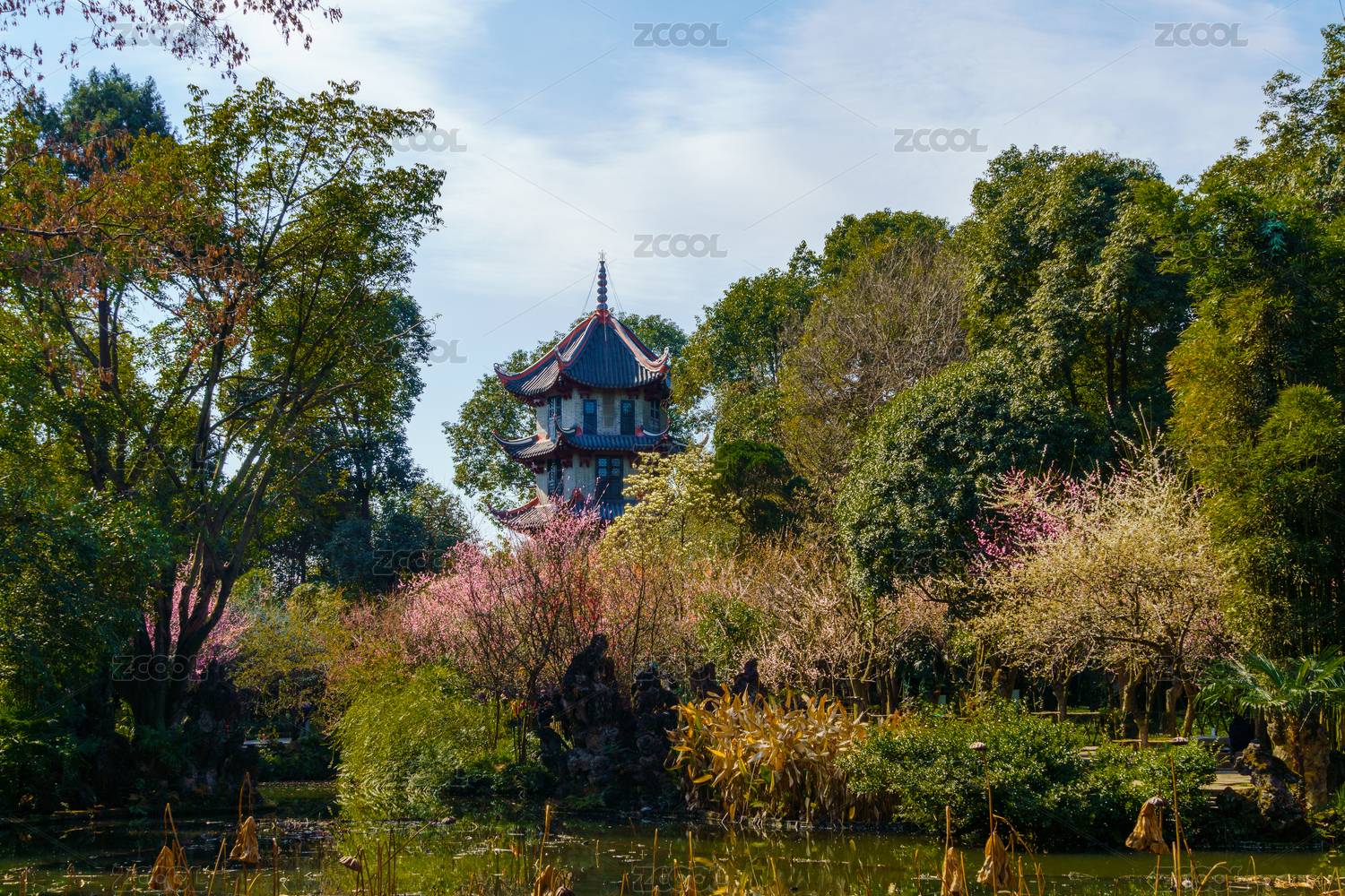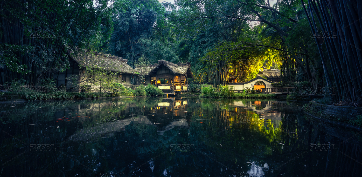 成都杜甫草堂的水面和中式建筑