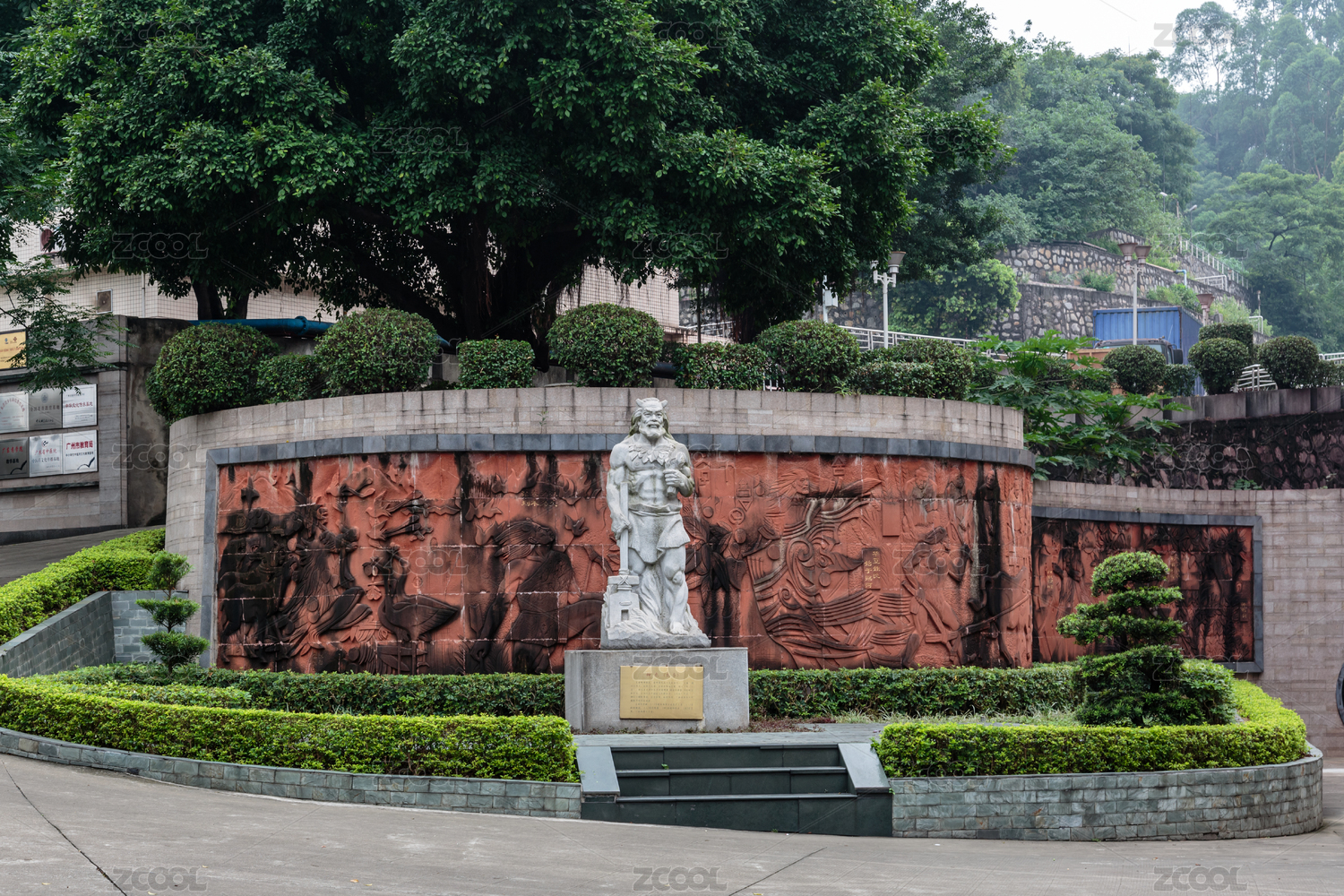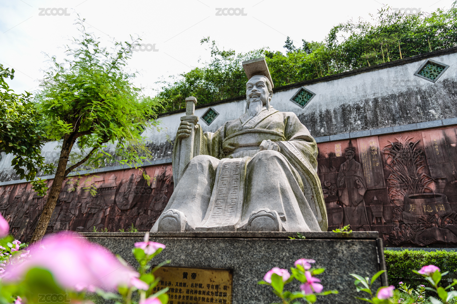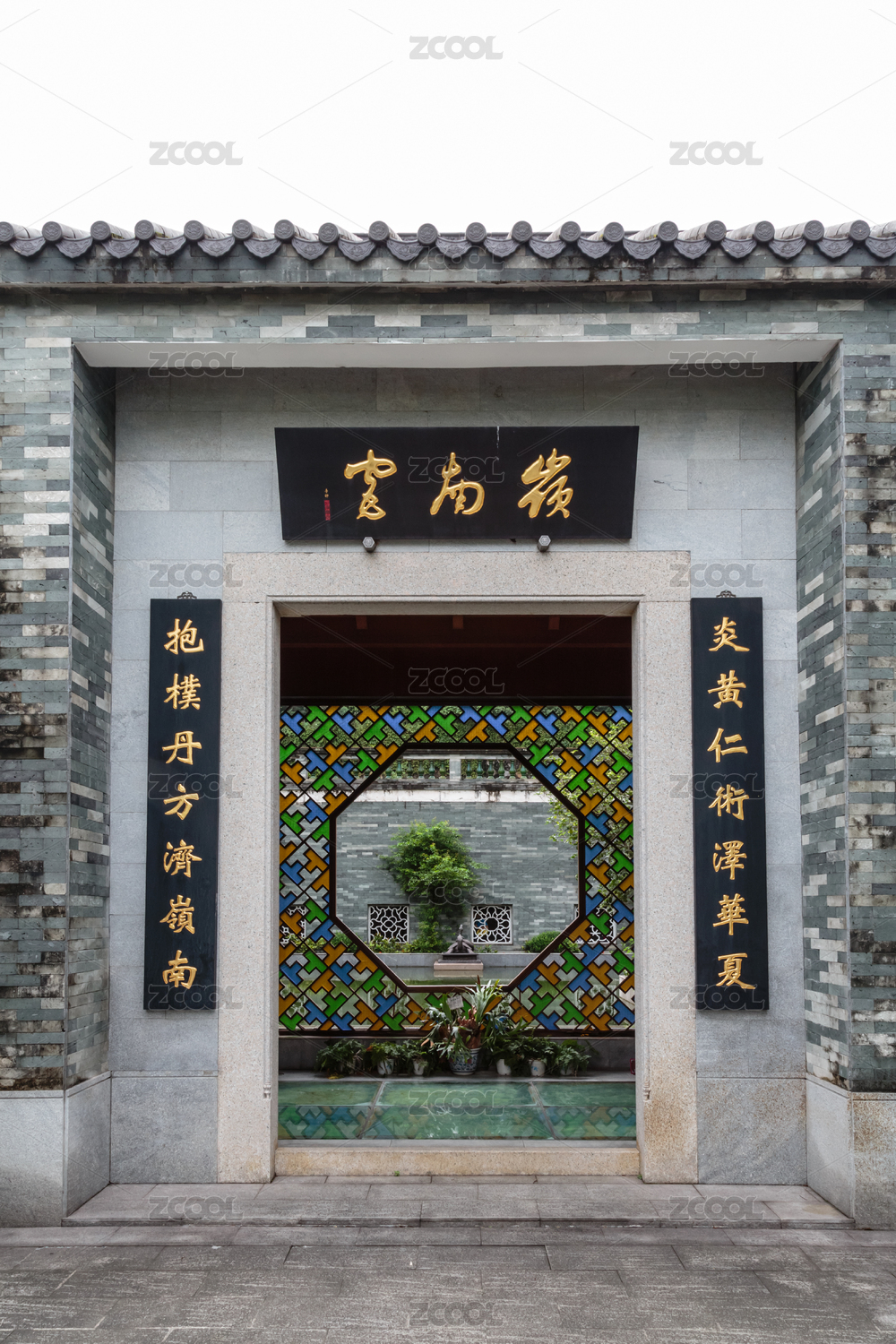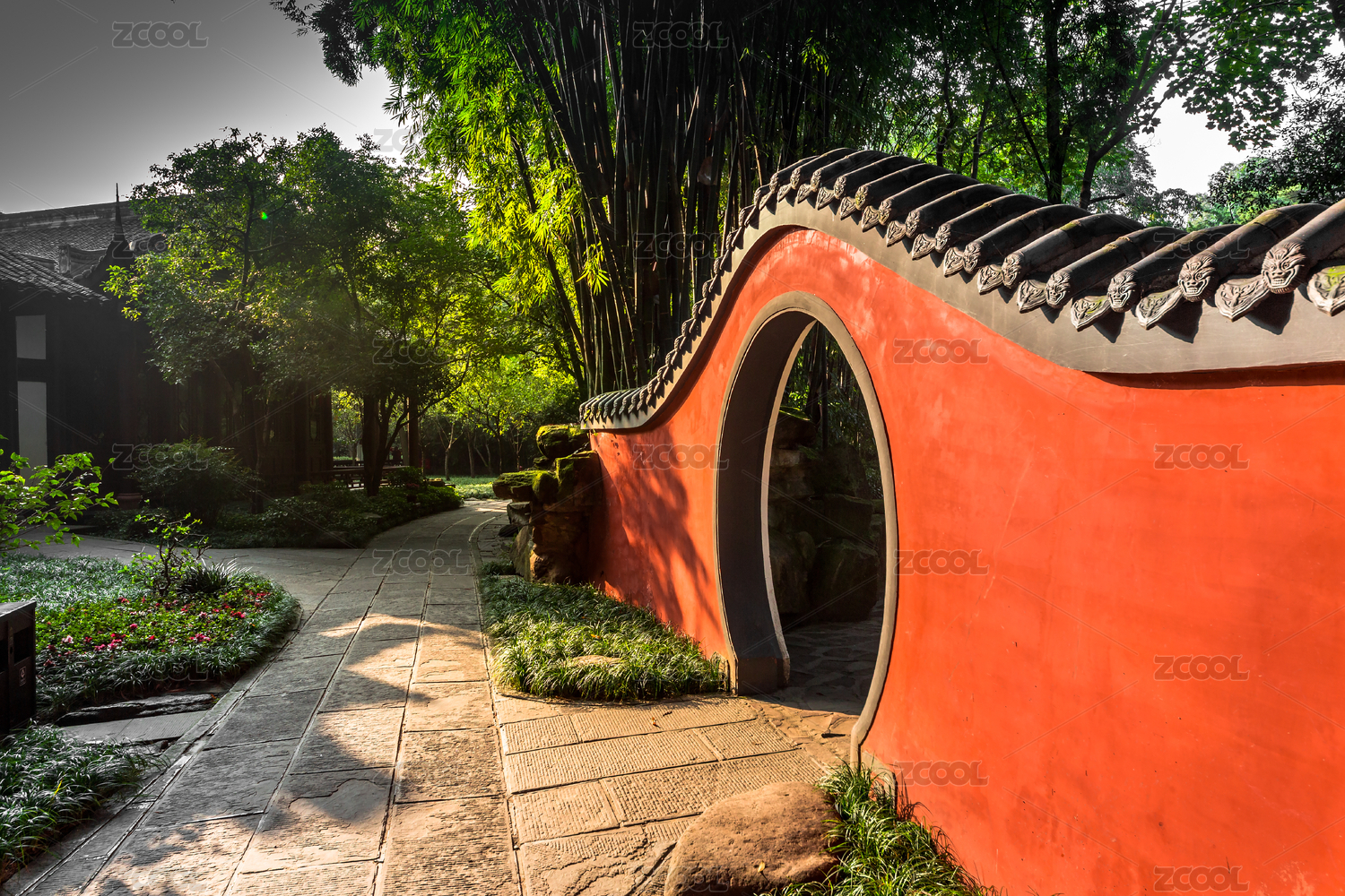成都杜甫草堂花徑紅墻黑瓦神獸雕刻