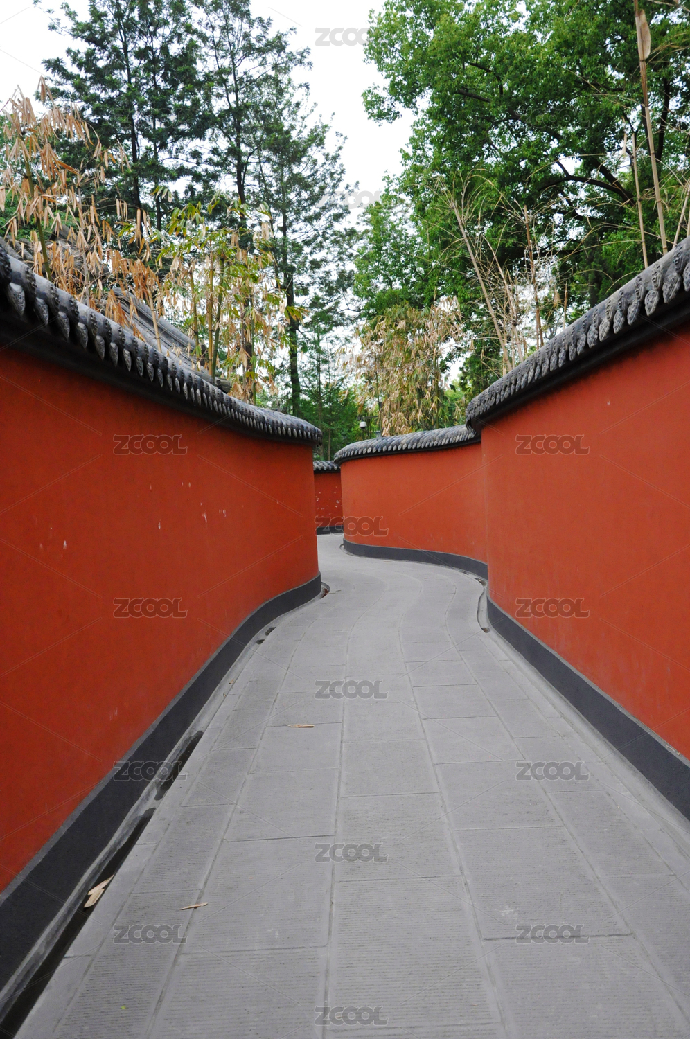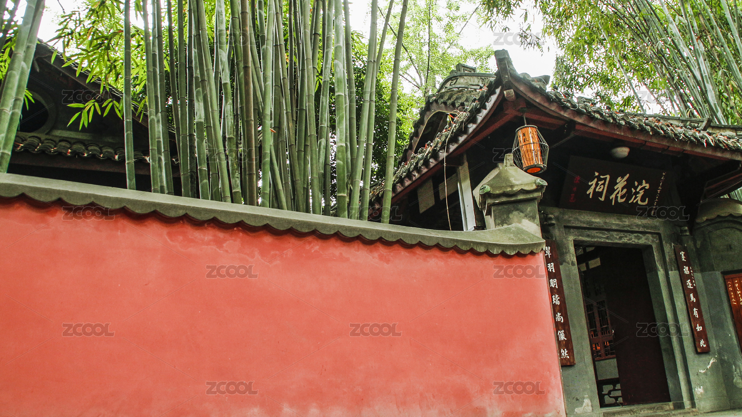 成都杜甫草堂里被竹子包圍的紅墻