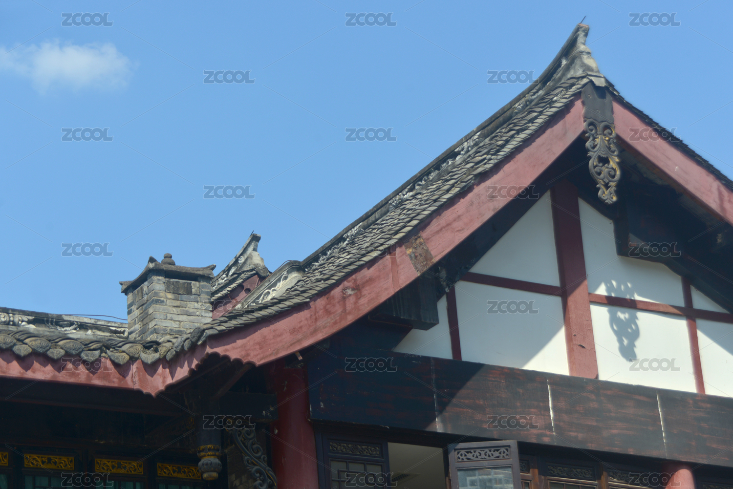 中國(guó)四川成都文殊坊川西民居屋頂爐灶煙囪