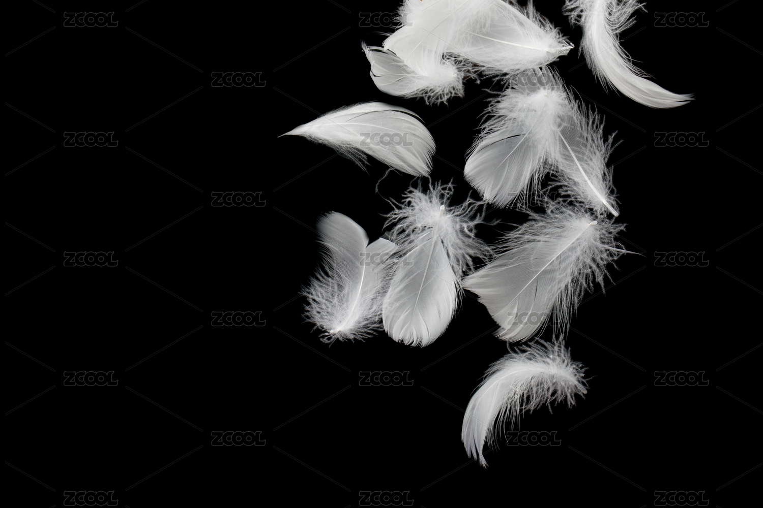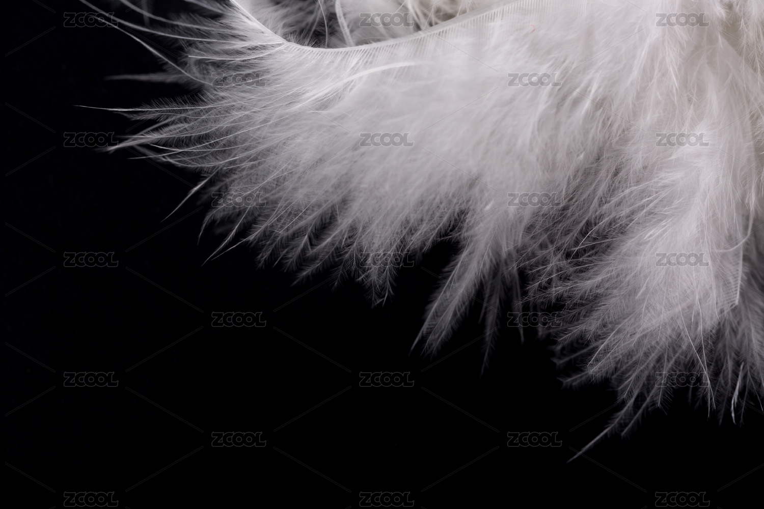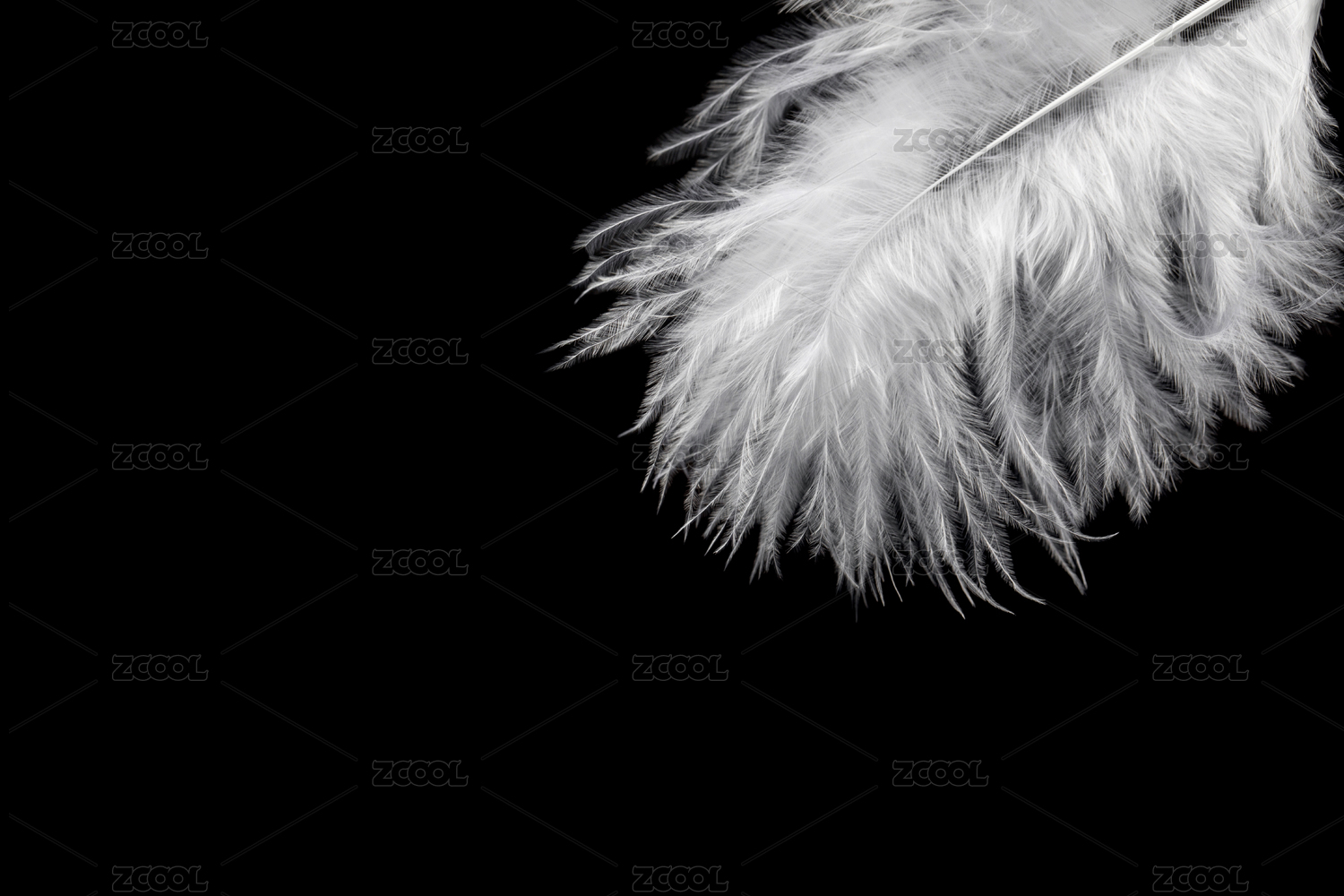 白色柔軟的羽毛在黑色背景上