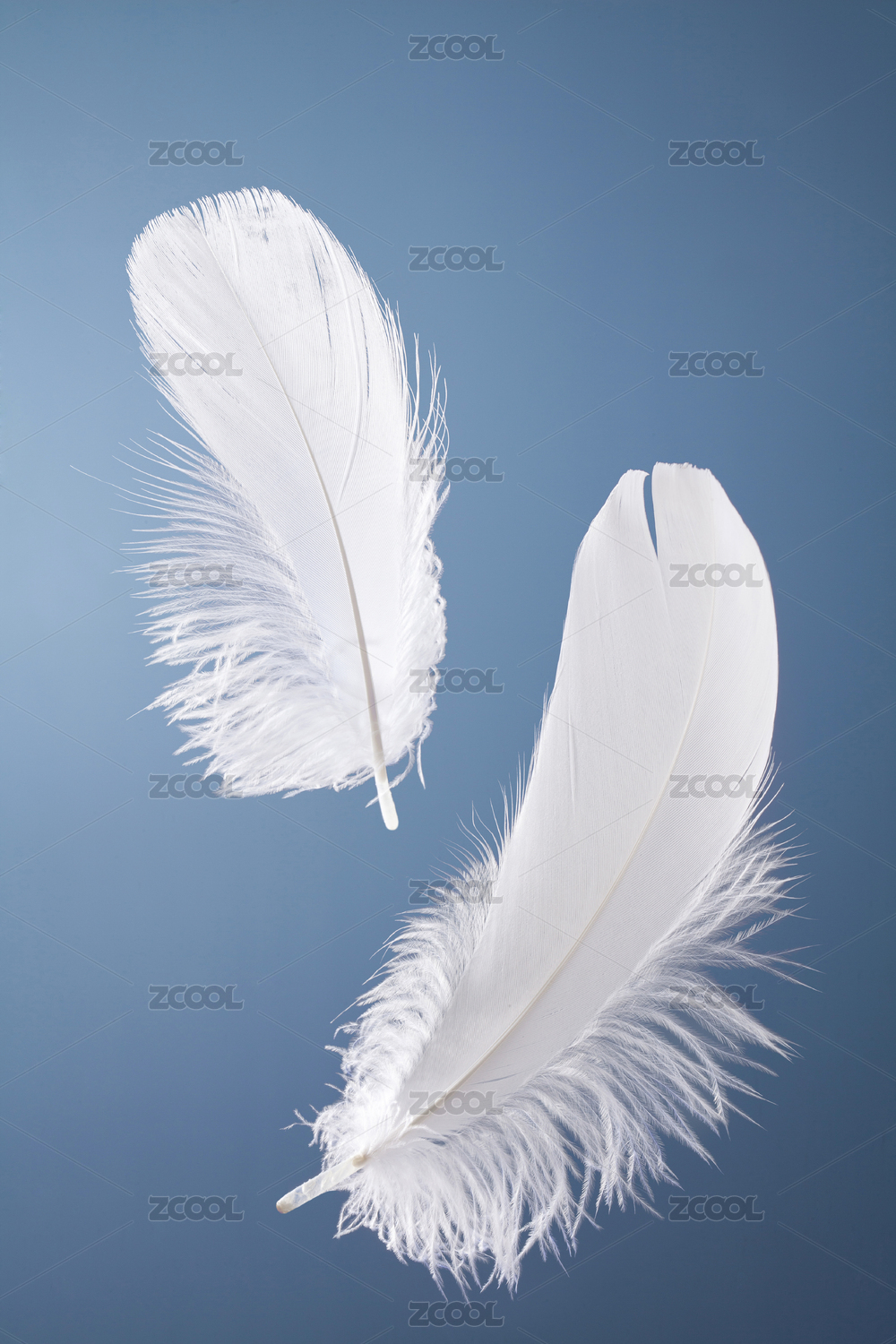 藍背景中的兩根白色羽毛素材