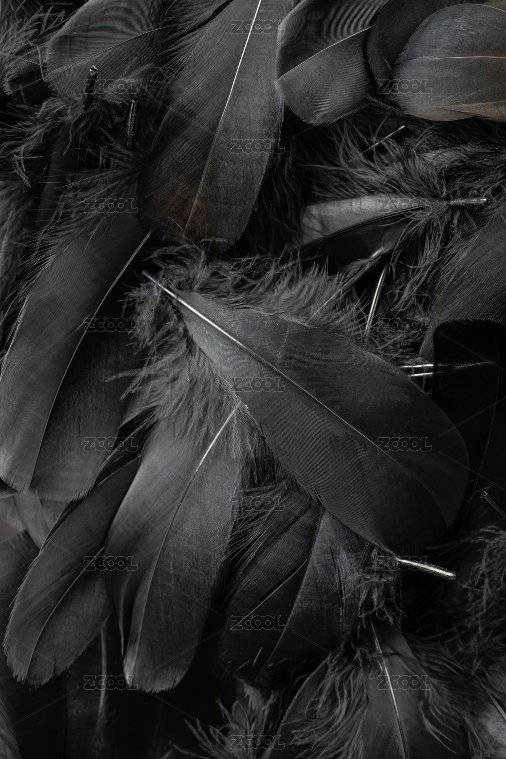 疊放在一起的天然鳥類灰黑色羽毛