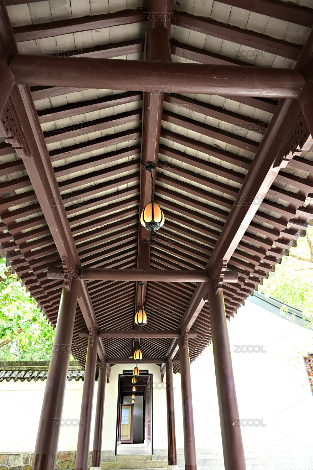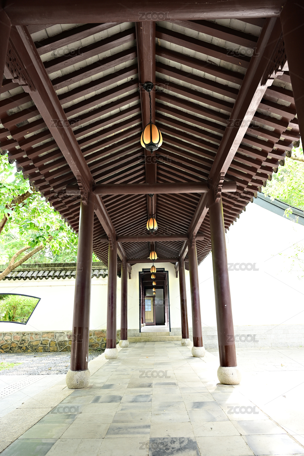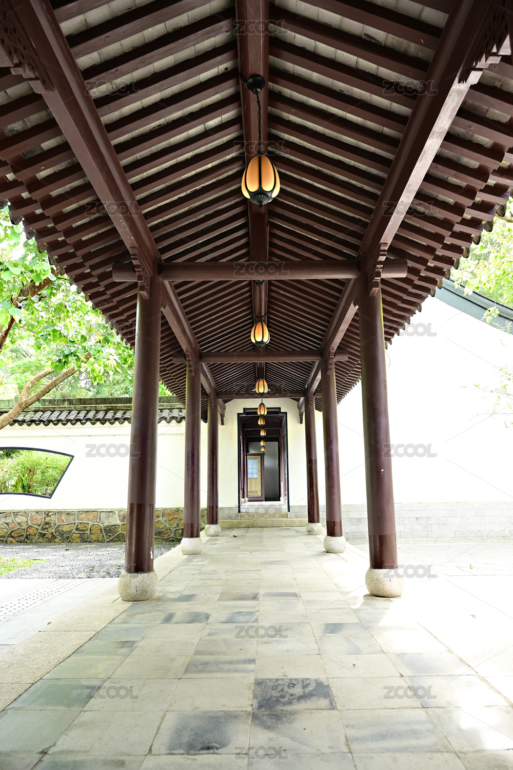 中國(guó)江蘇揚(yáng)州園林古建長(zhǎng)廊