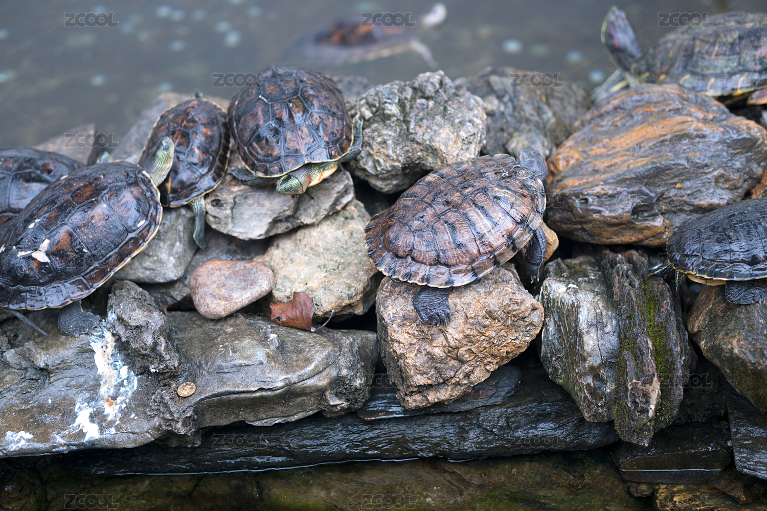 水里石頭上的小烏龜