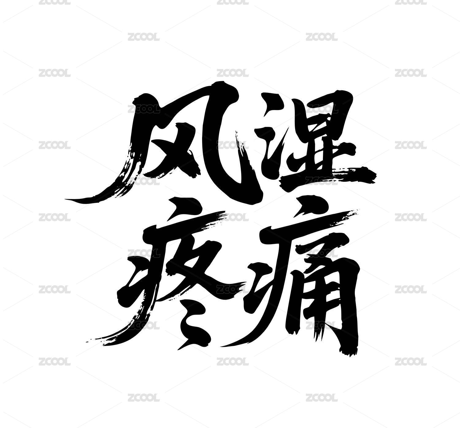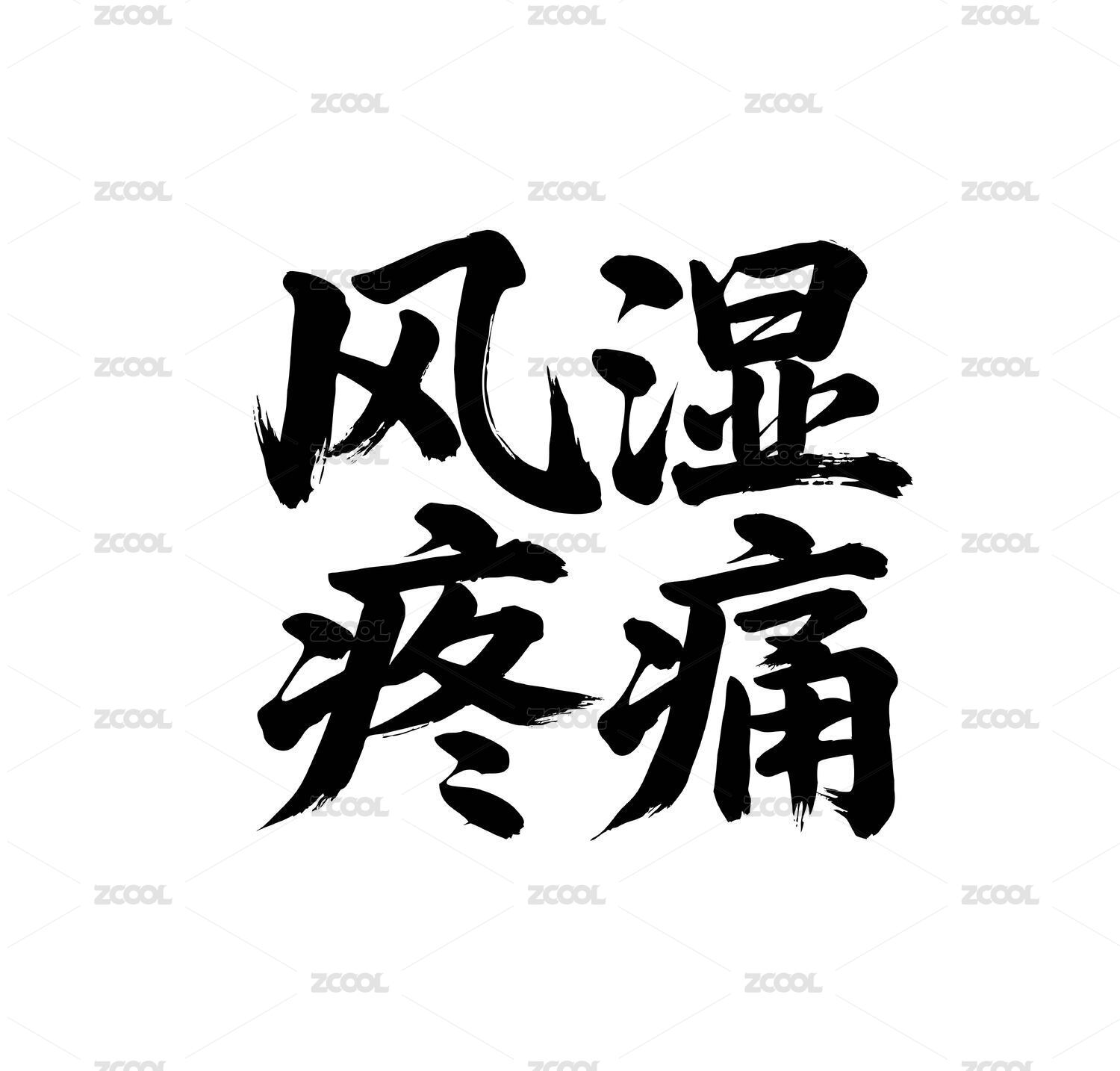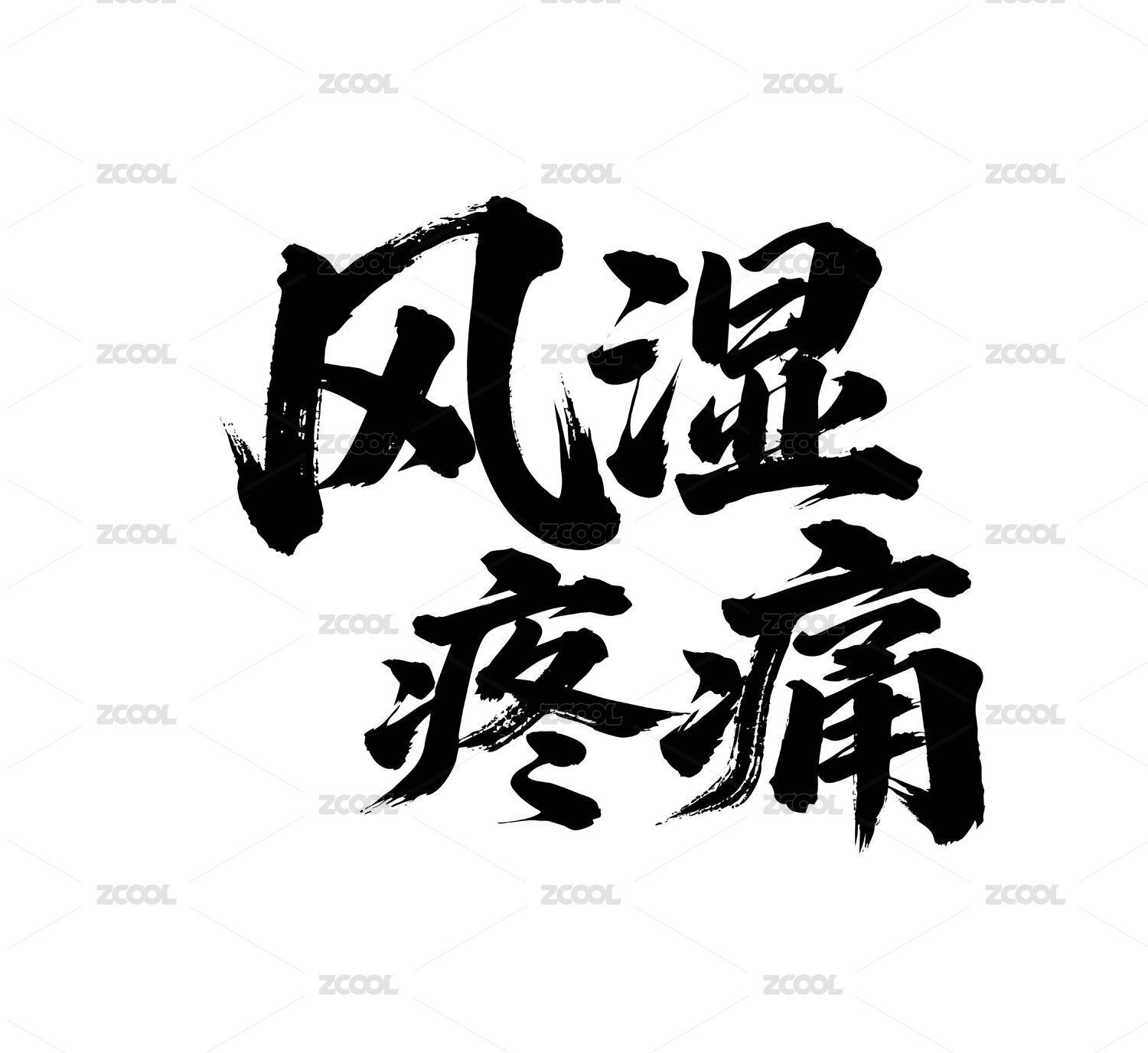 風濕疼痛矢量書法手寫毛筆字