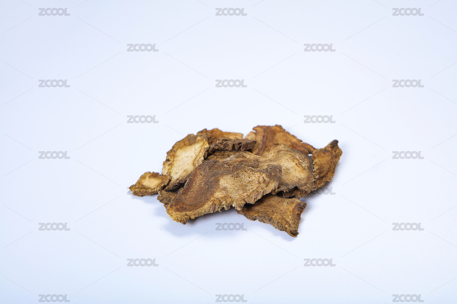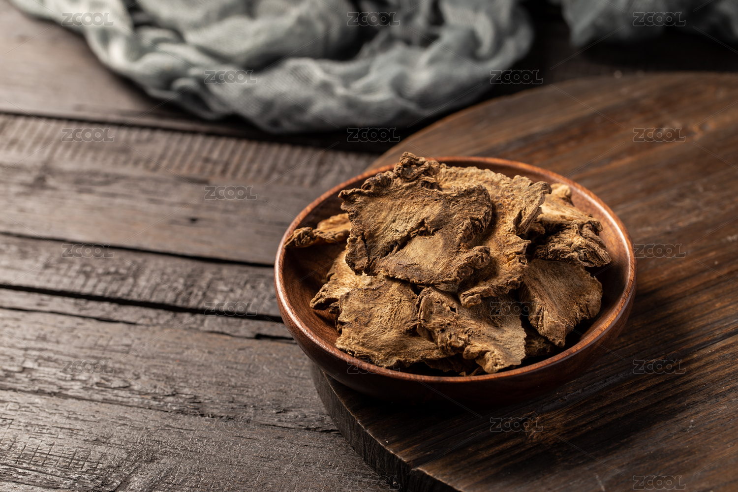 木板背景上一碟中藥材獨活