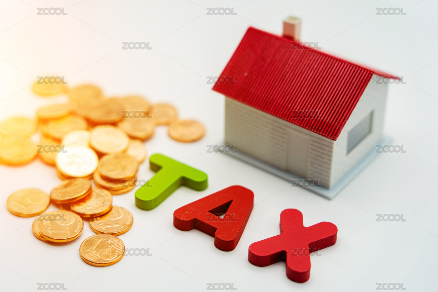 字母組成的TAX和手推車?yán)锏姆孔幽P?/div>