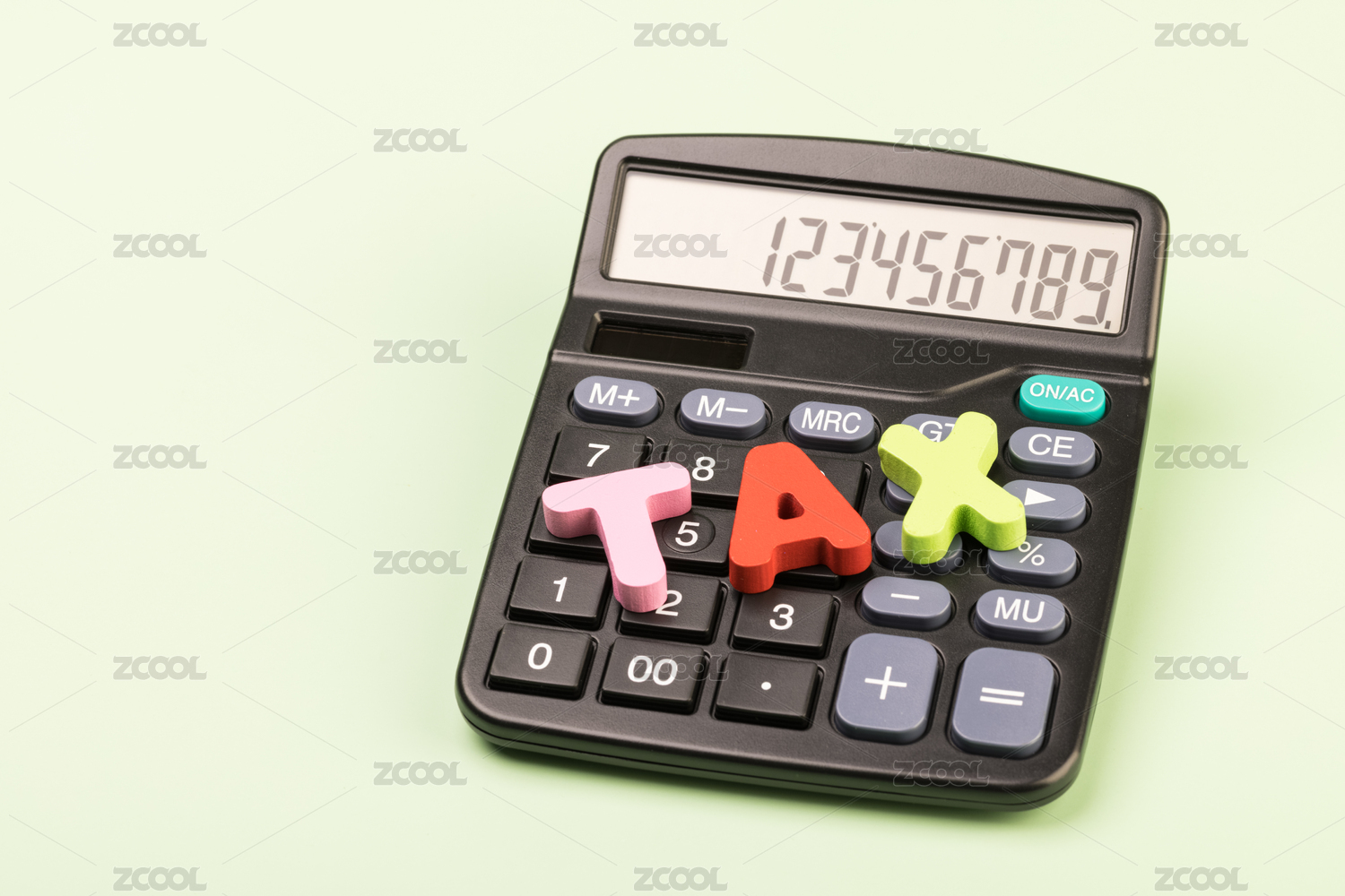 計(jì)算器上的TAX文字和硬幣,稅務(wù)稅收概念