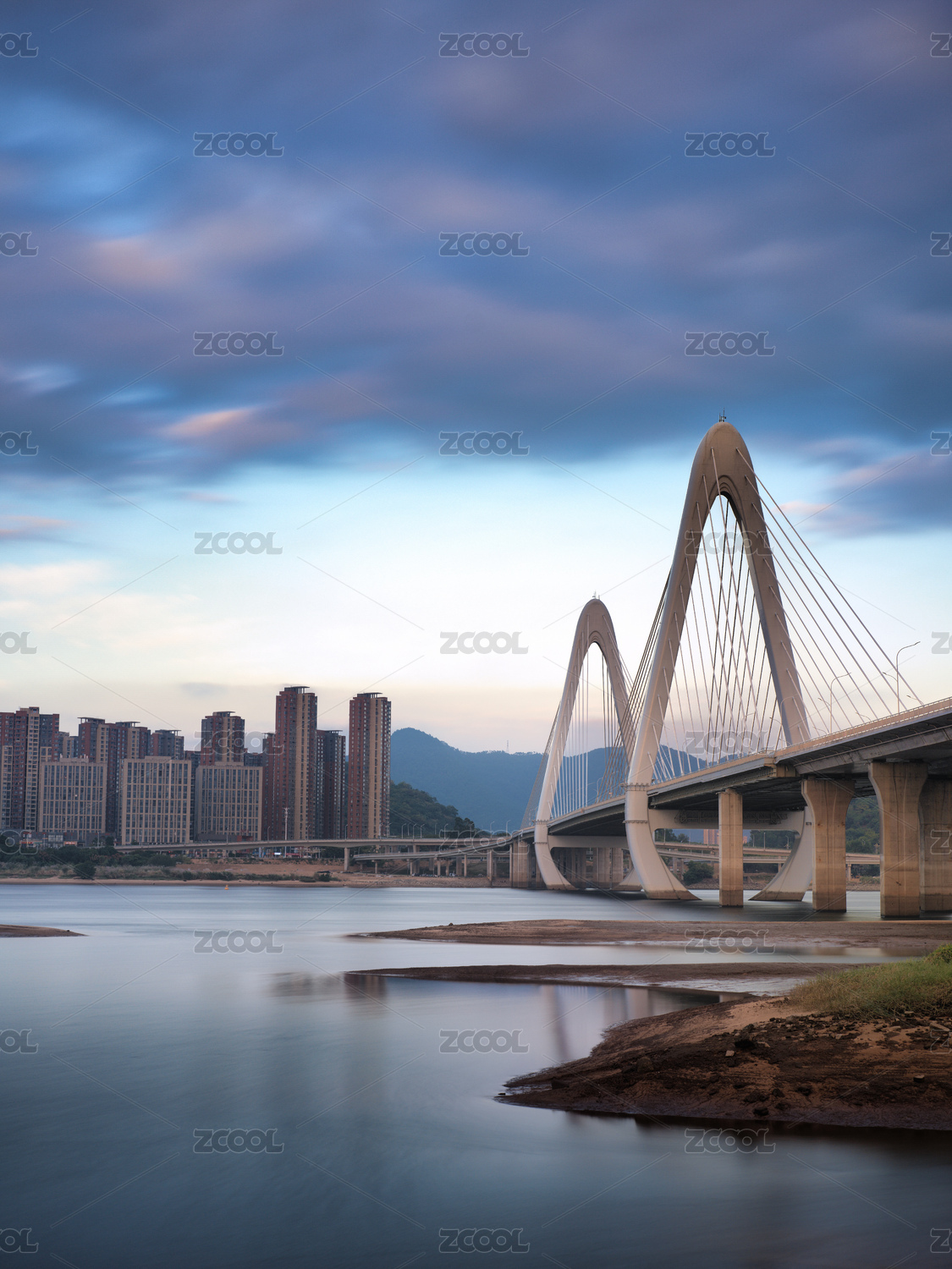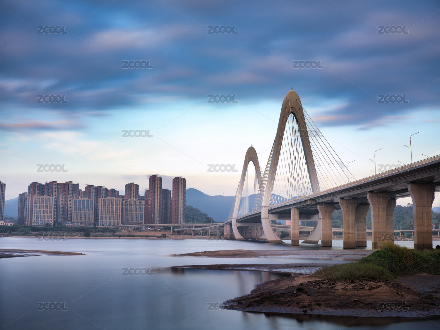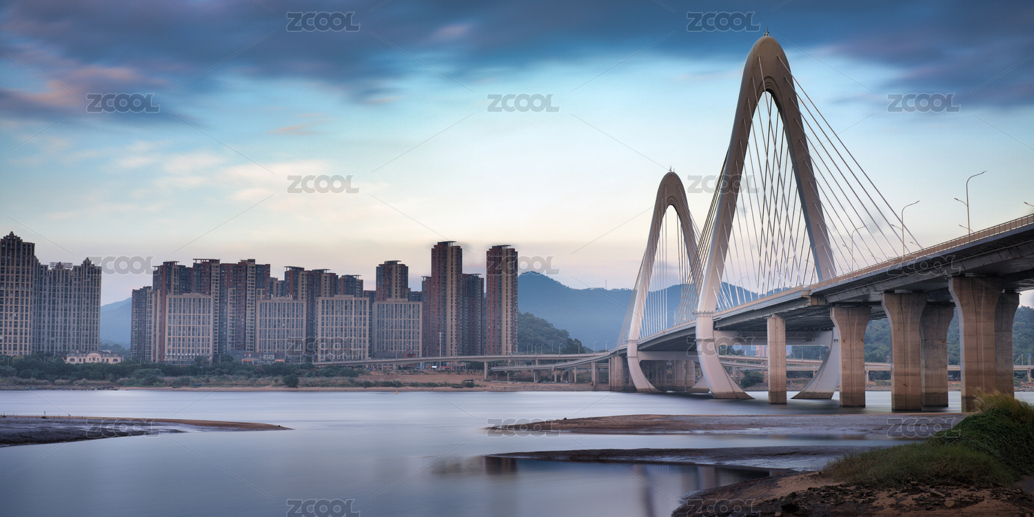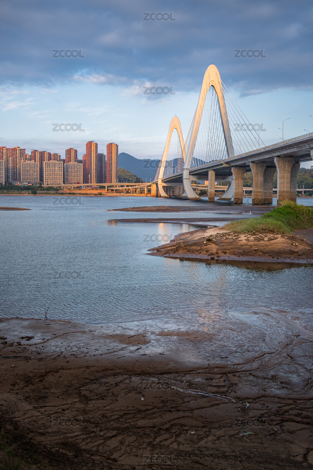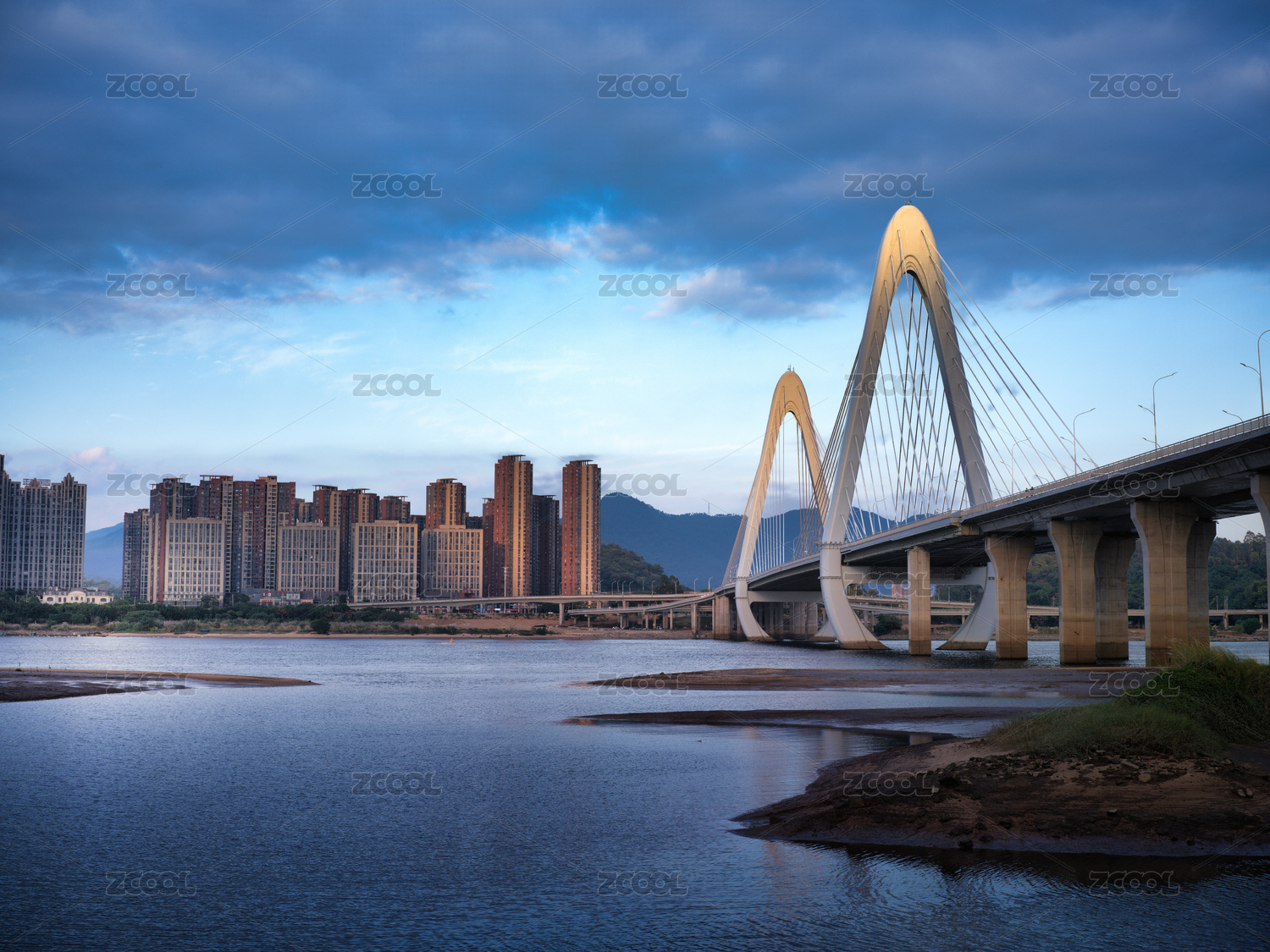 福州白龍洲大橋與城市建筑群及河岸景觀