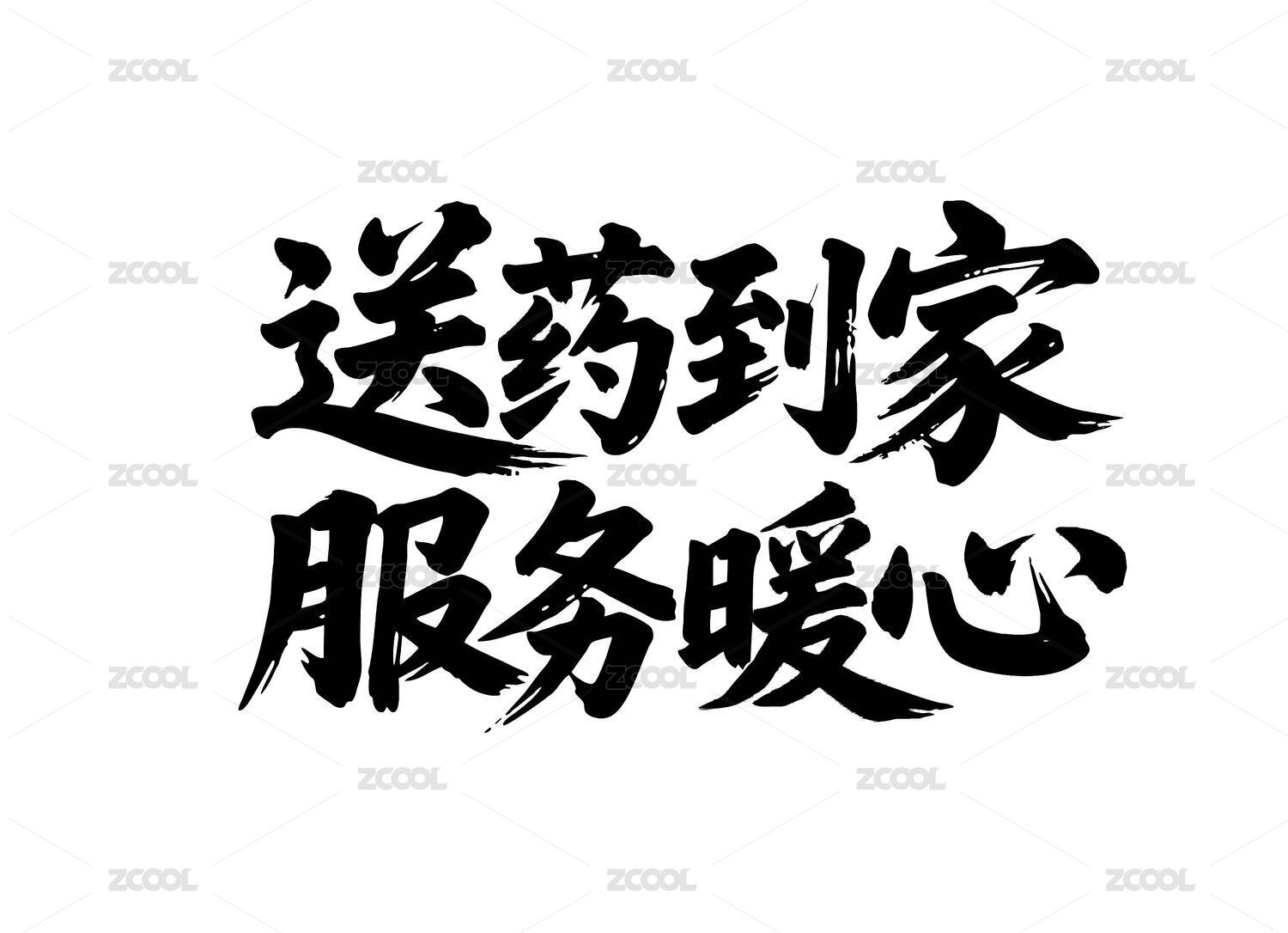 送藥到家服務(wù)暖心矢量書法手寫毛筆字