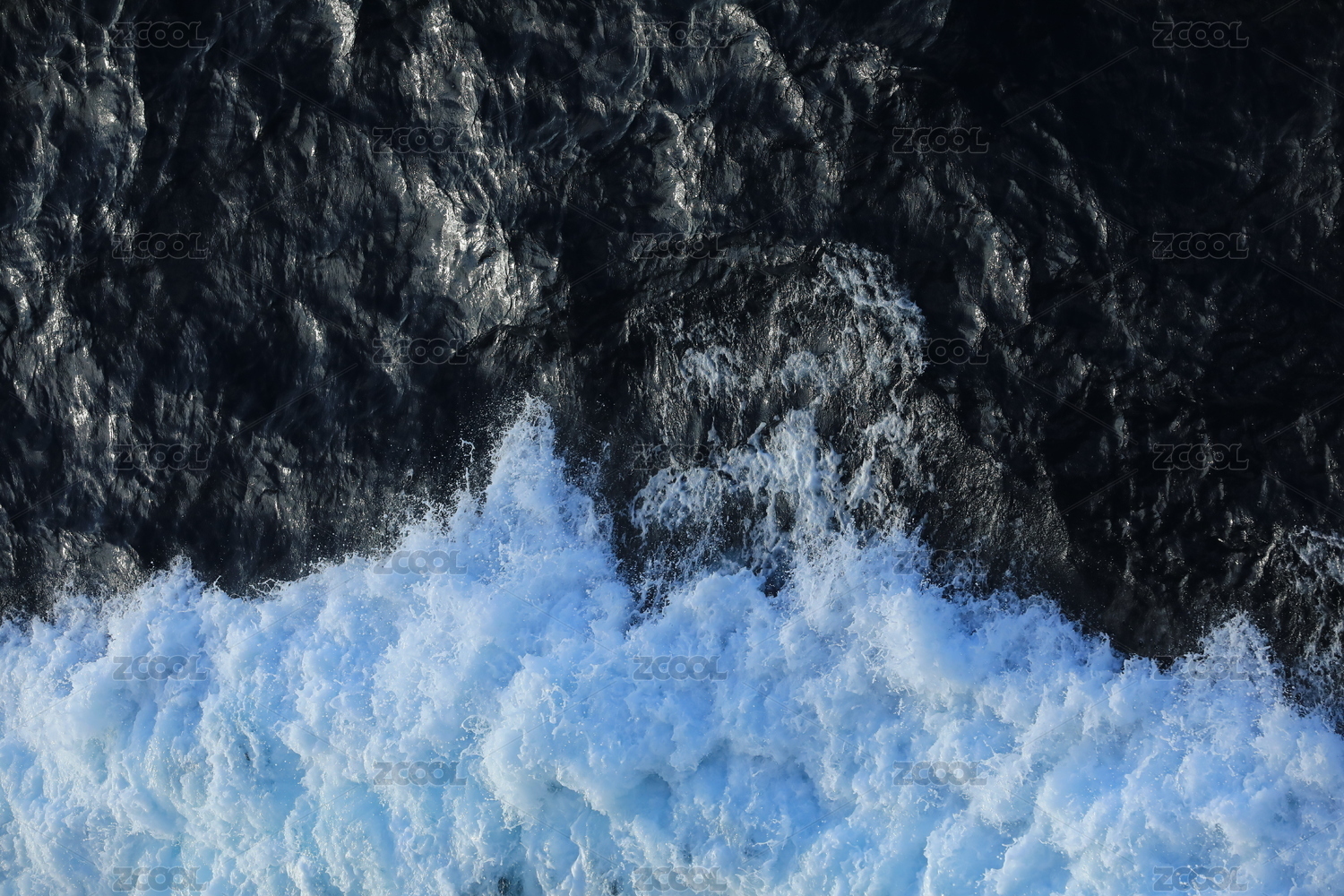 藍(lán)色紋理的海浪翻涌卷起了浪花