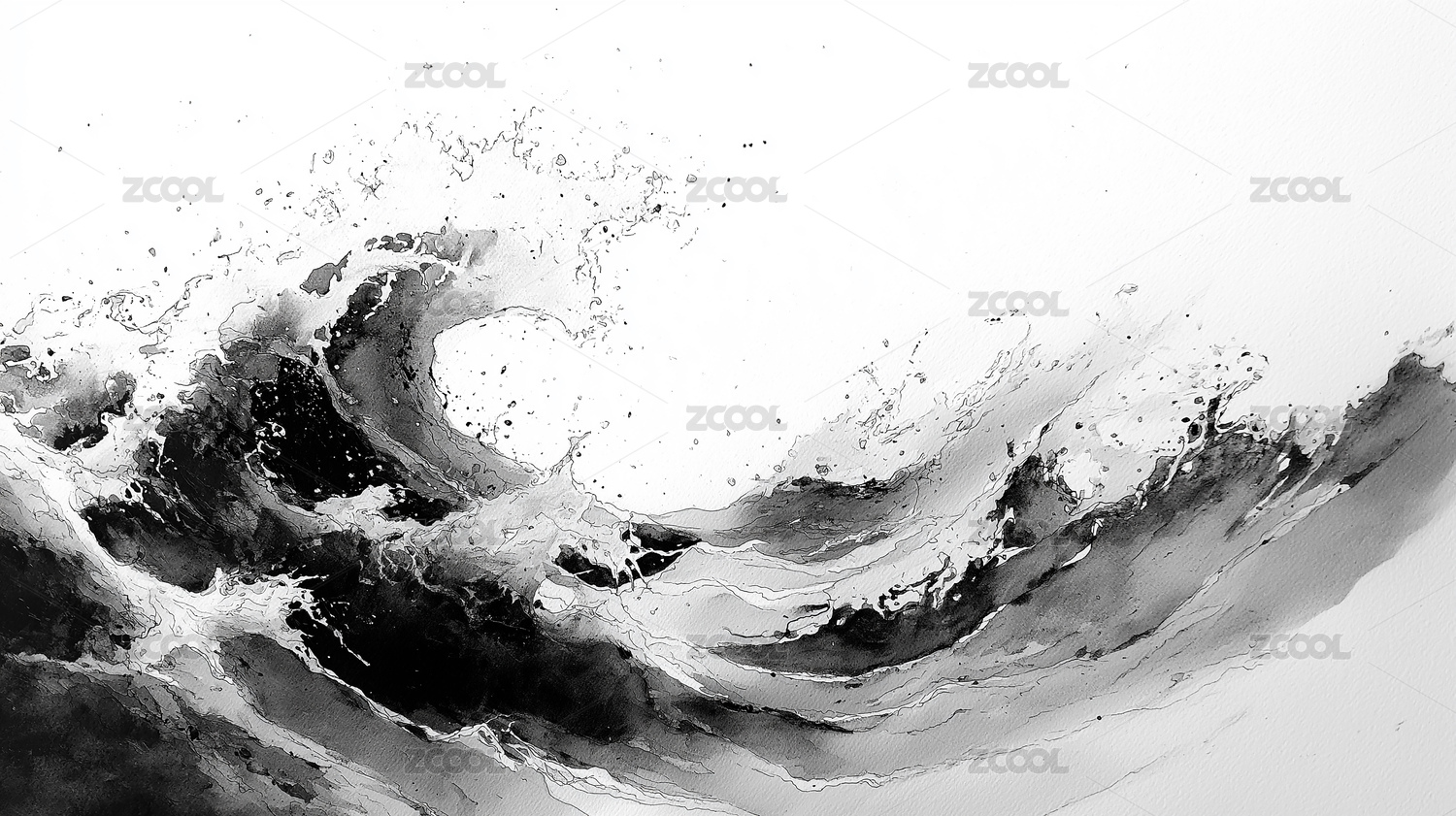 黑白水墨海浪翻涌潑濺藝術(shù)肌理紋