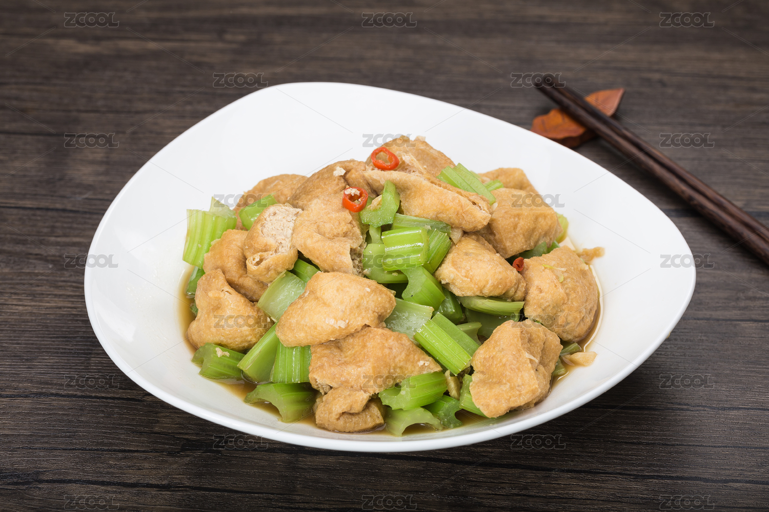 中式菜肴油豆泡炒芹菜