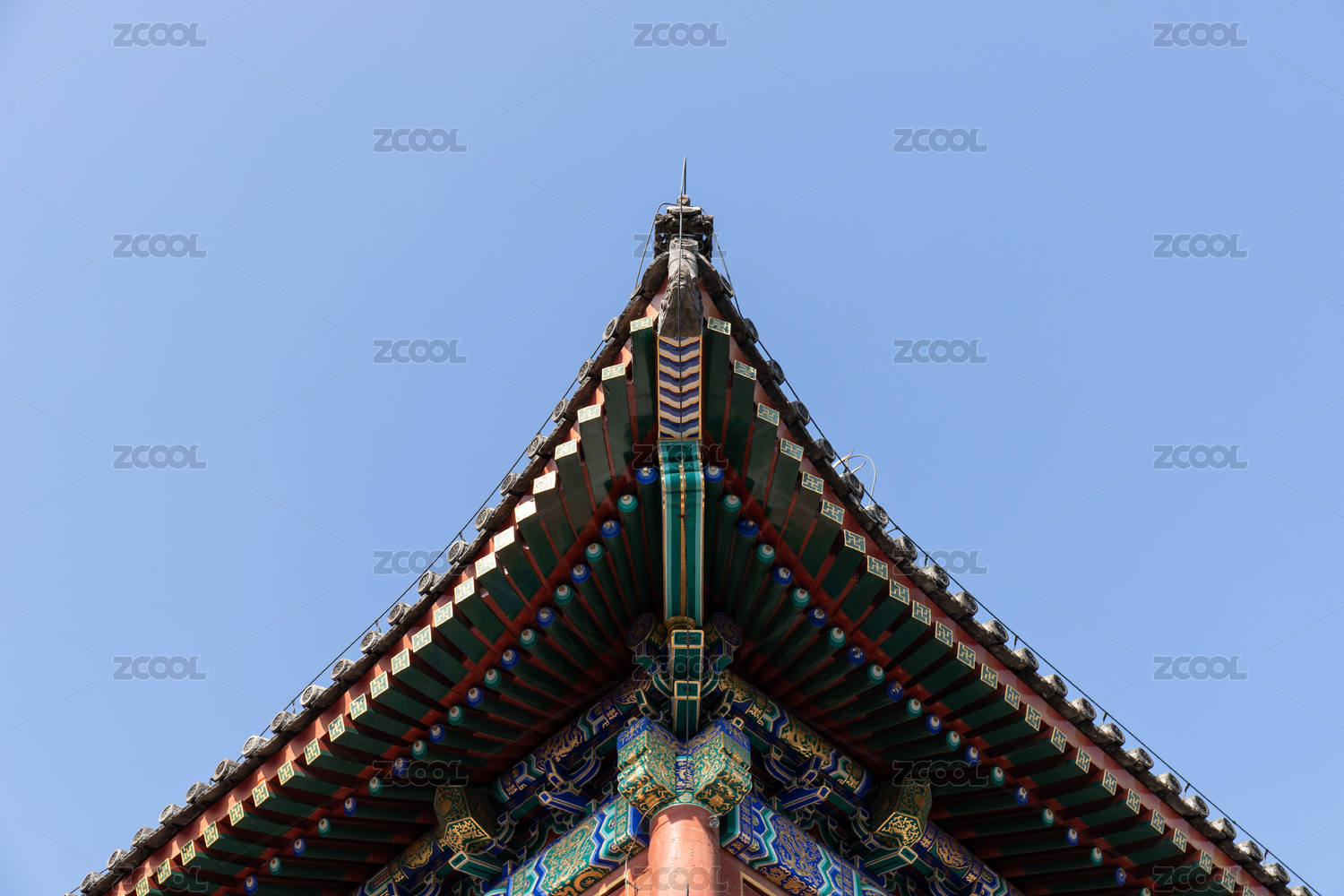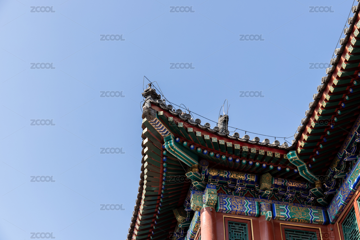 中國北京市頤和園德和園大戲樓古建筑屋檐