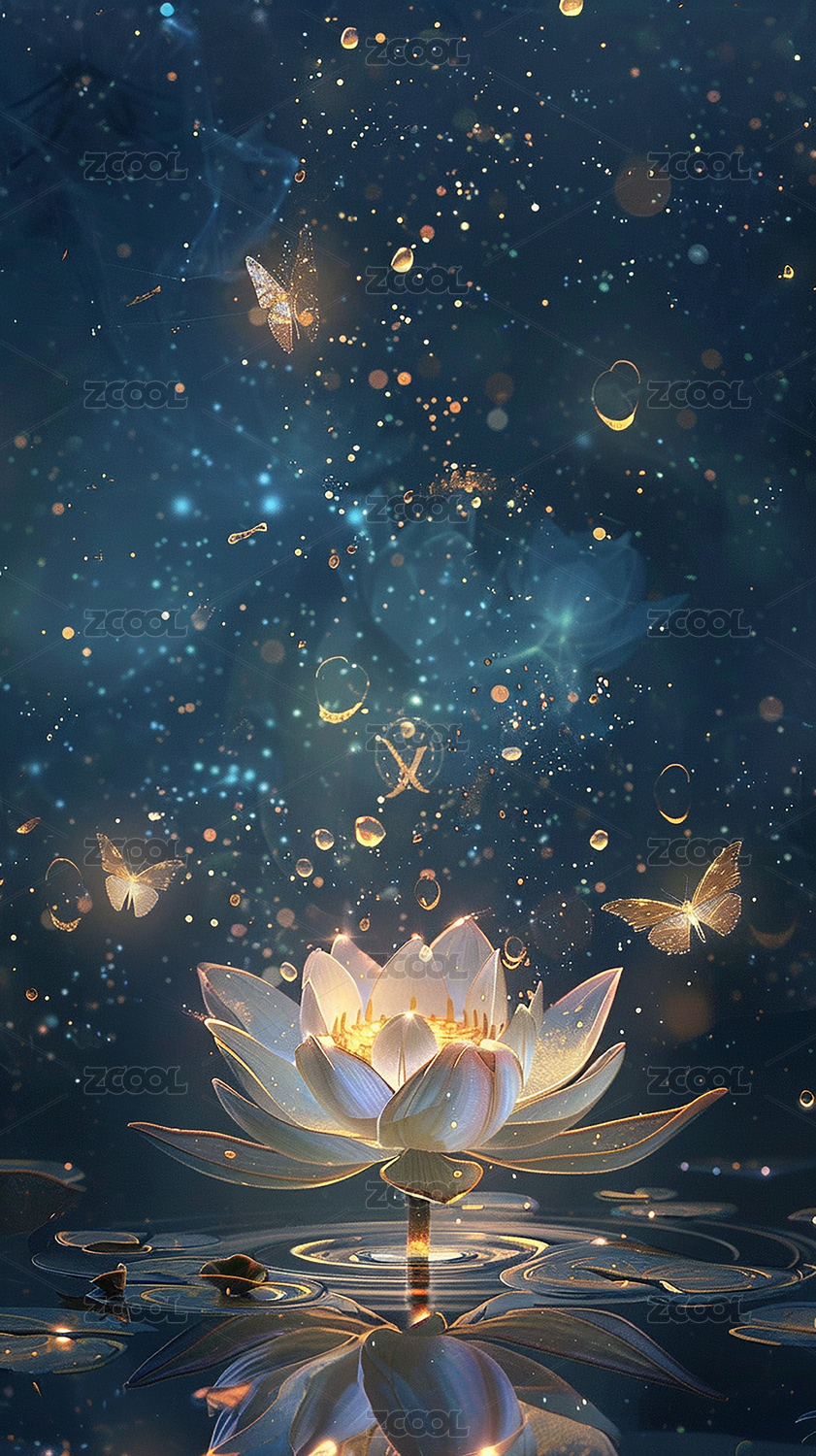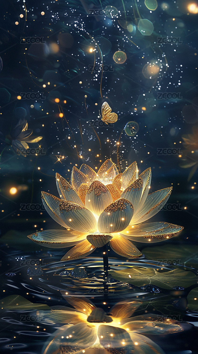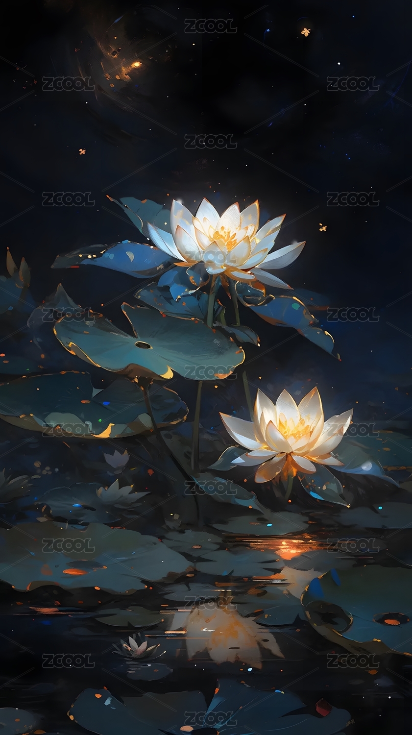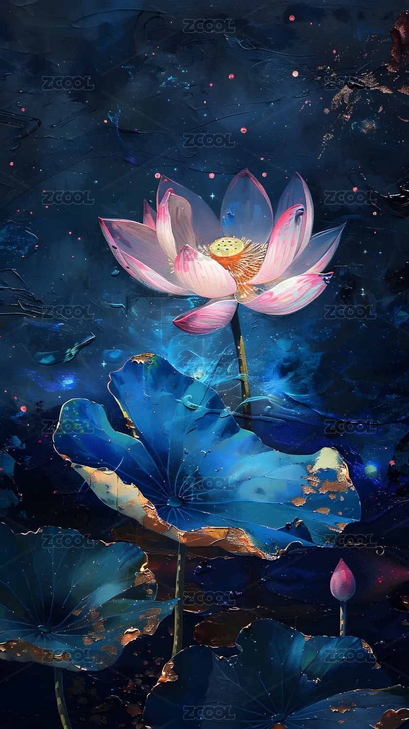 黑底X光透視彩色線條蓮花荷花3D插畫背景