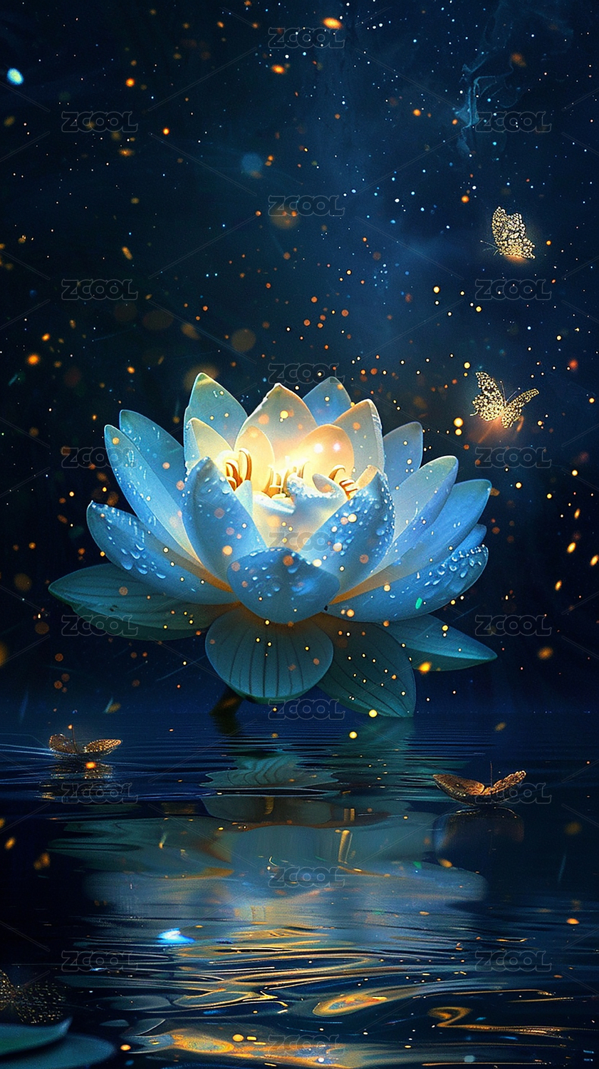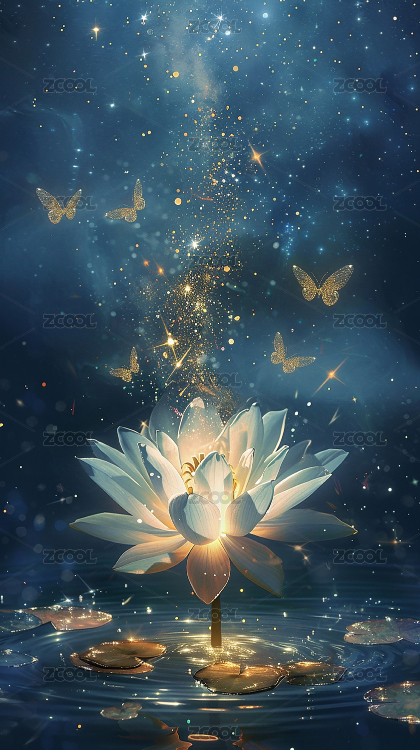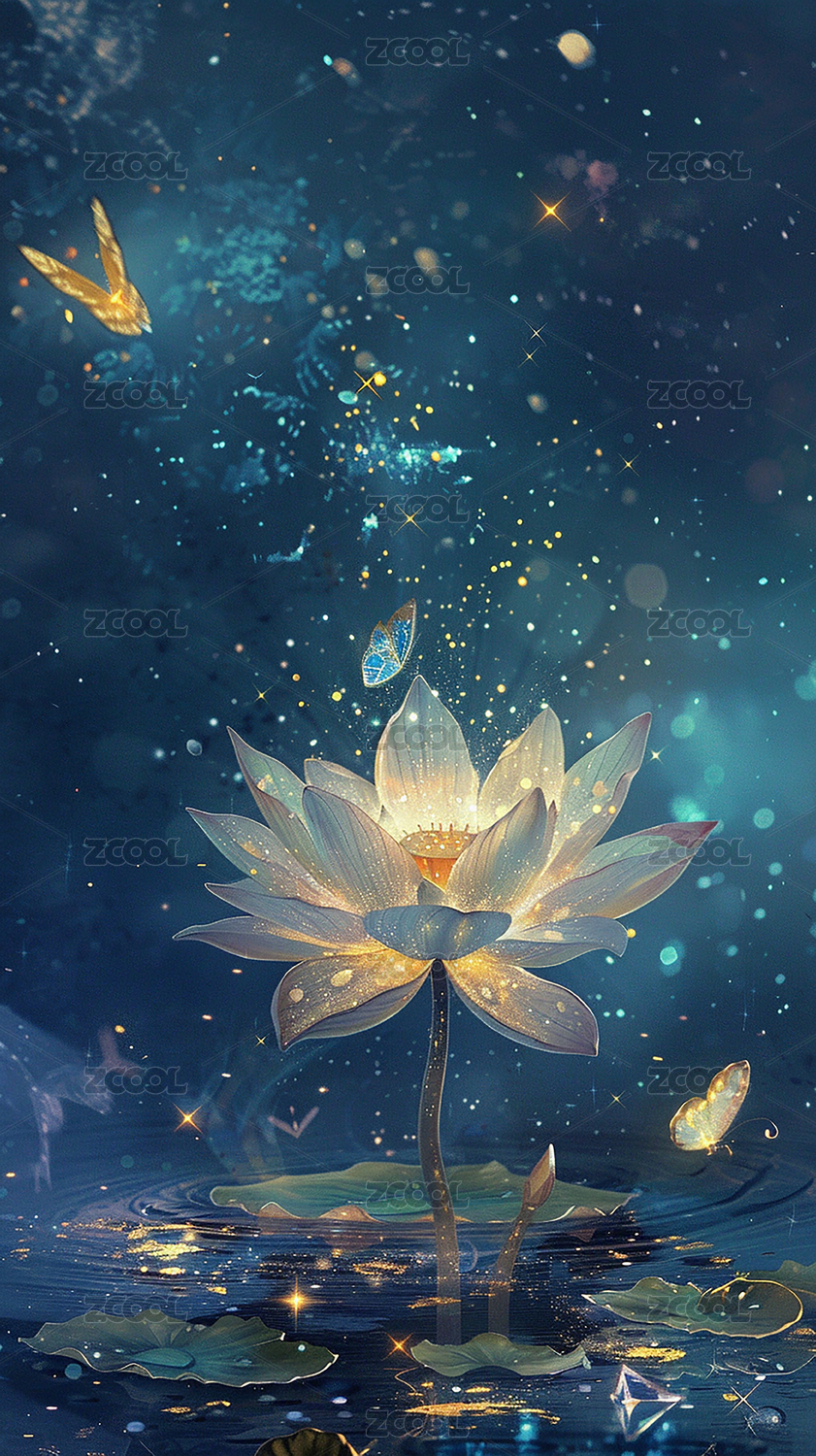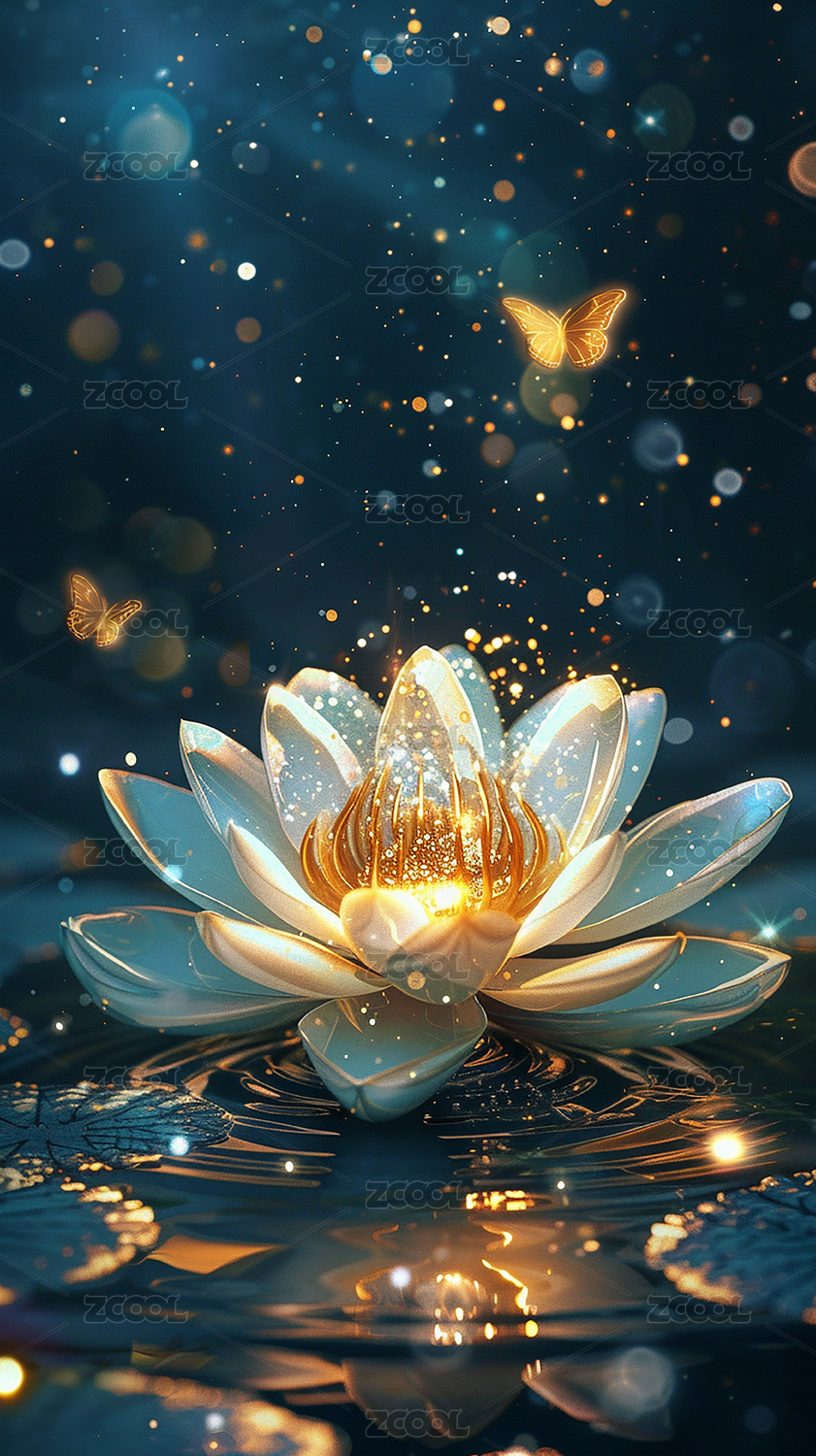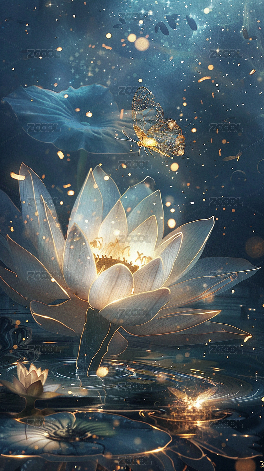 黑底X光透視彩色線條蓮花荷花3D插畫背景