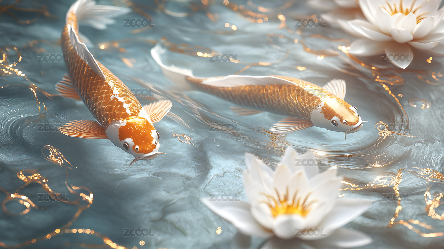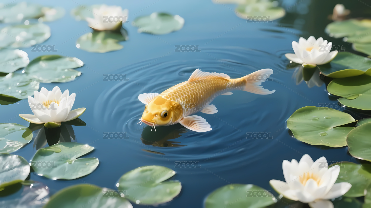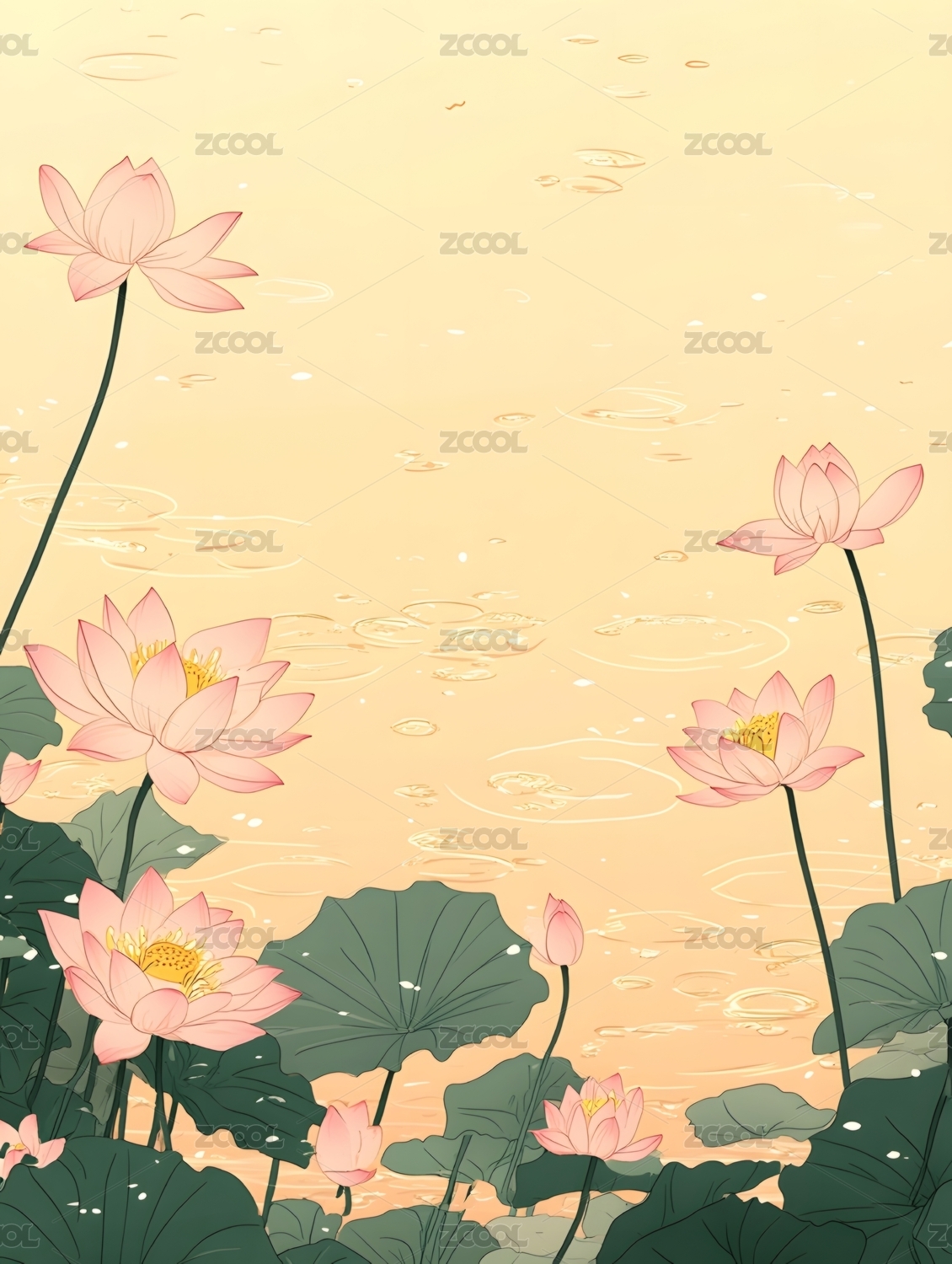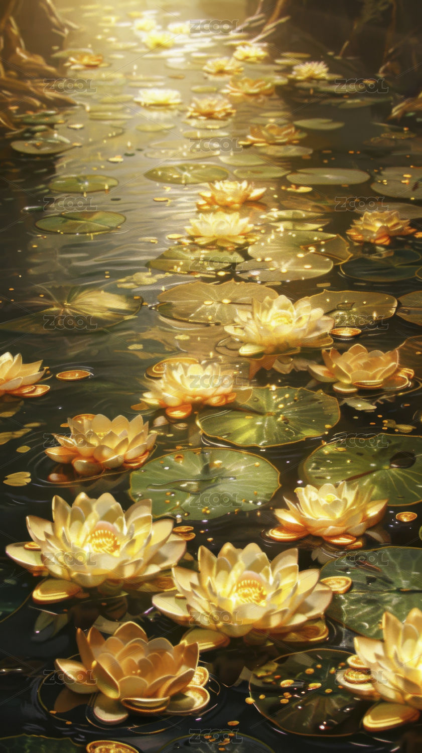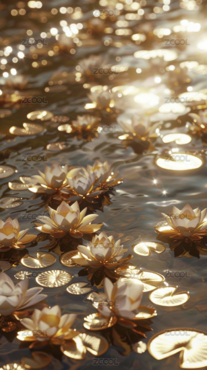 微風(fēng)中的淺草與金色陽光下的睡蓮