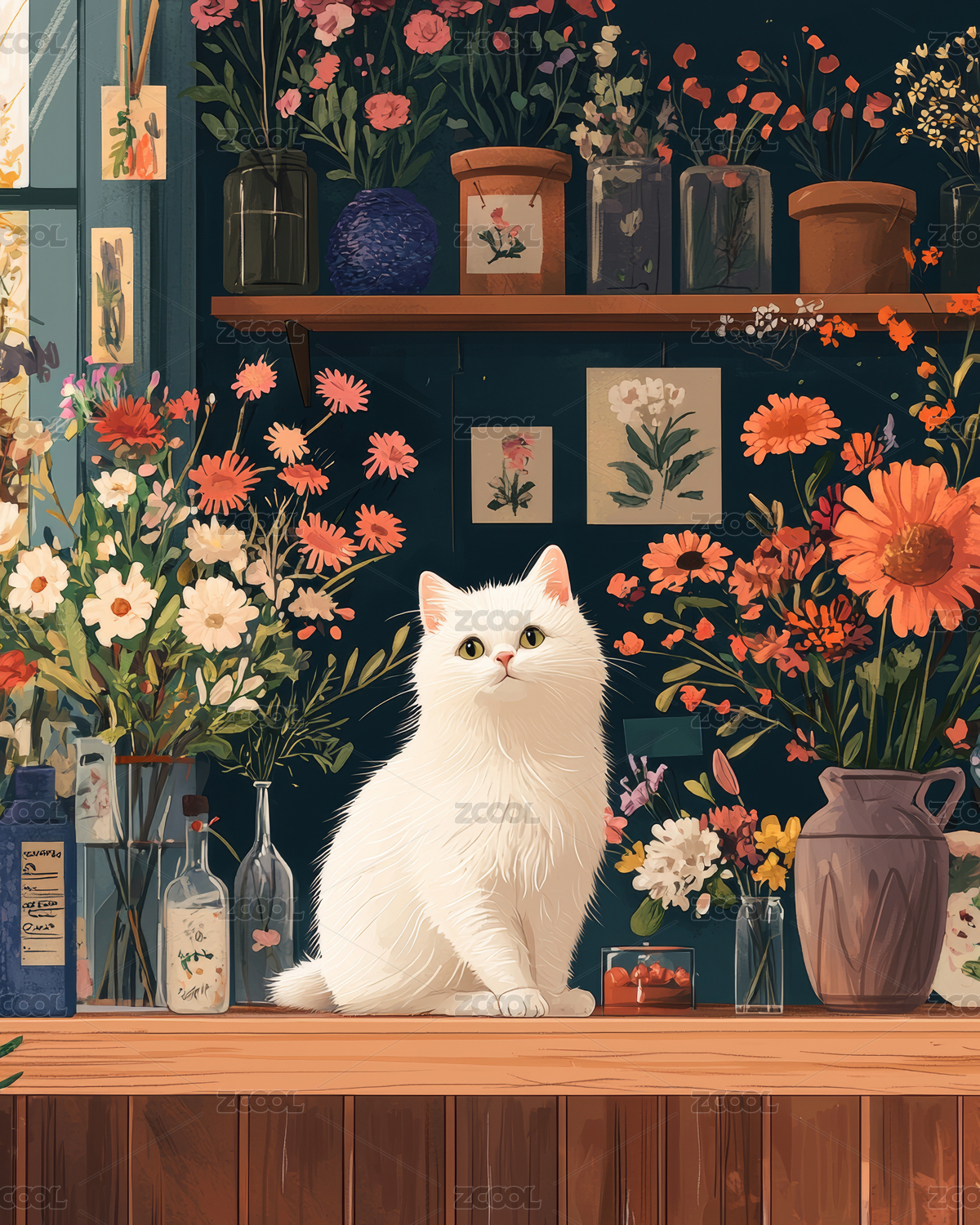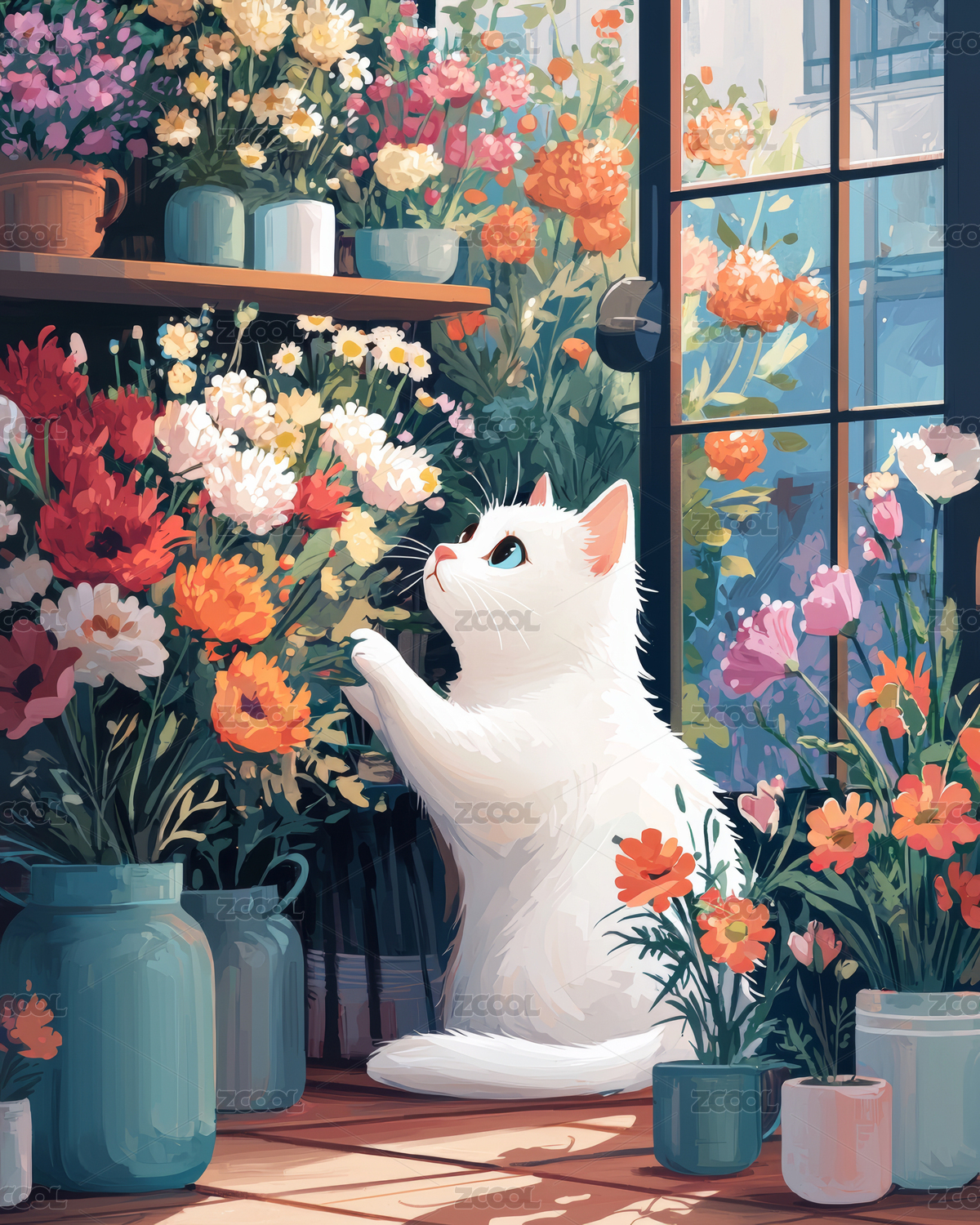熱帶植物花草和白色的格子花架,室內(nèi)花草