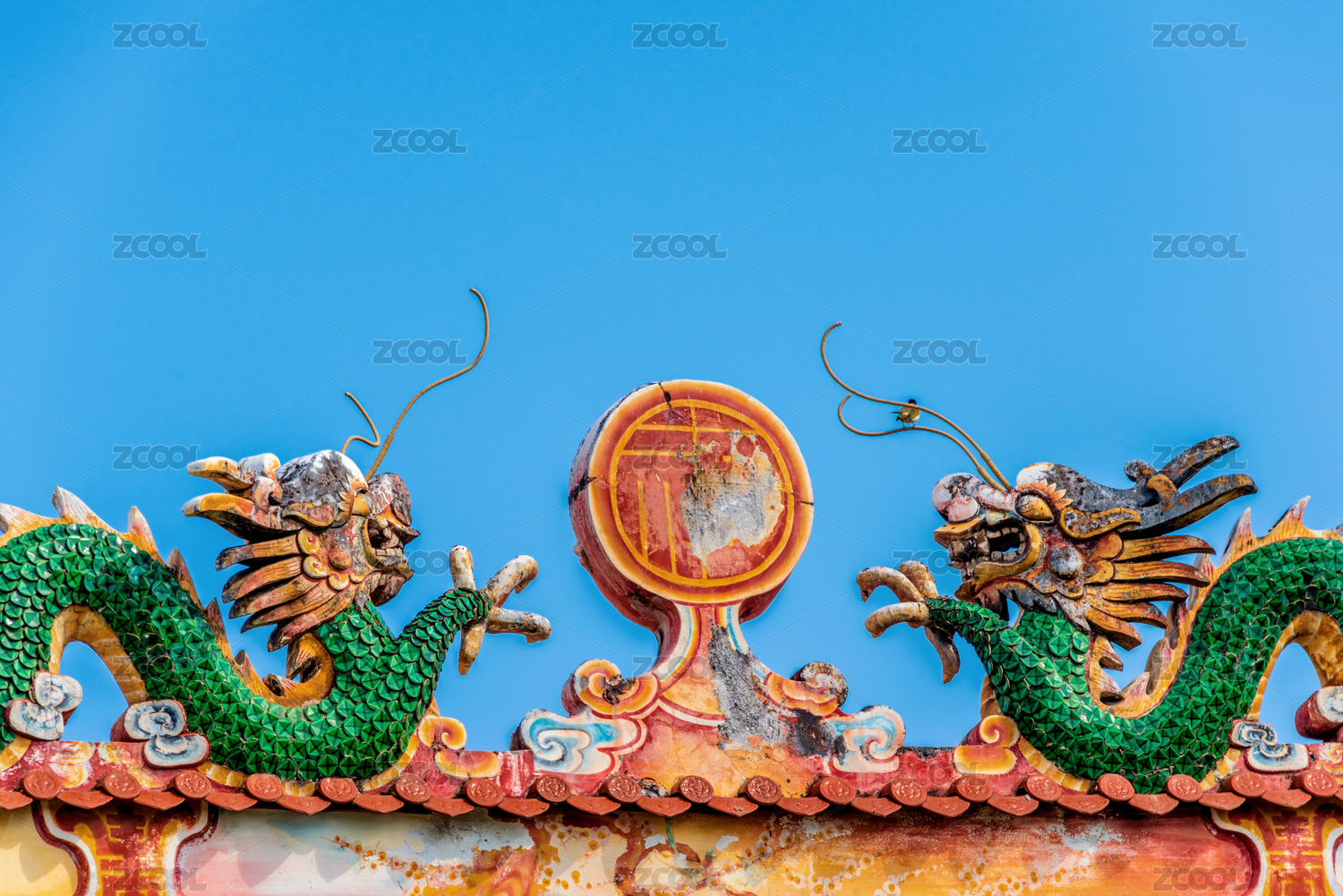 海南省文昌市文城鎮(zhèn)孔廟建筑頂部的雙龍戲珠