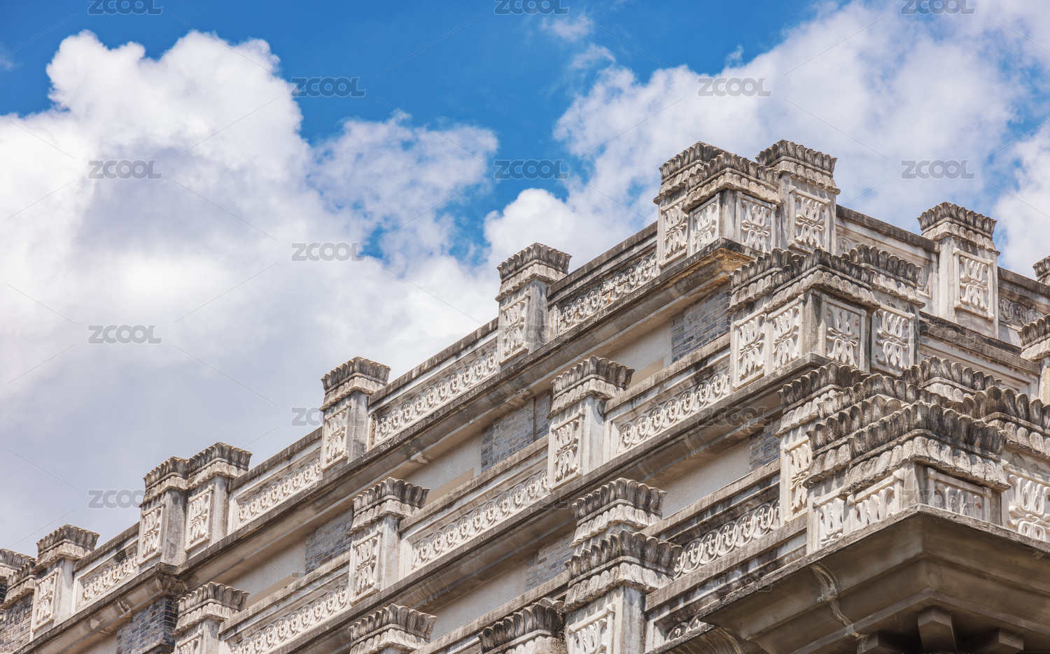 藍(lán)天白云下的建筑頂部景觀