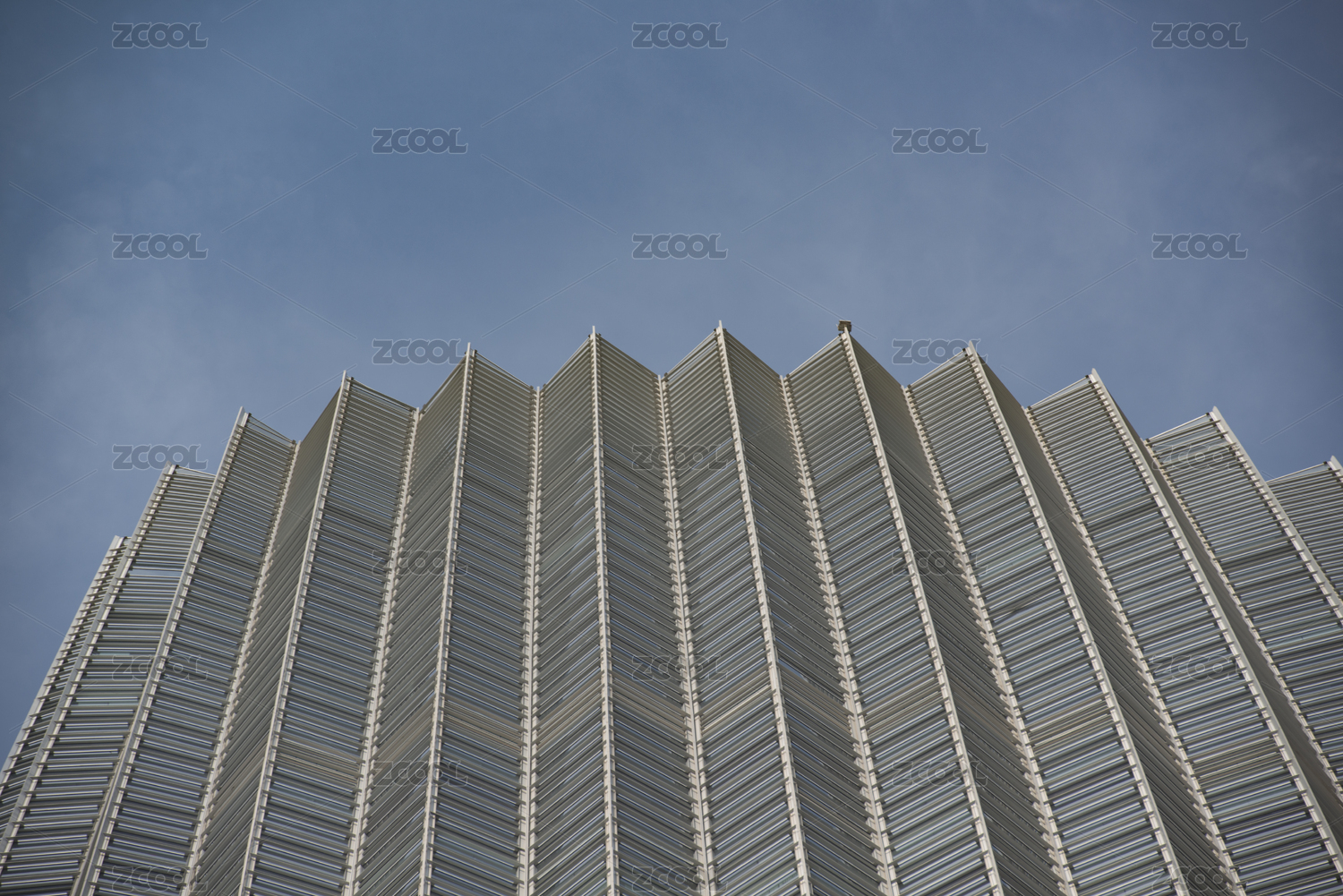 弧形的建筑頂部和藍(lán)色的天空,城市建筑圖片。