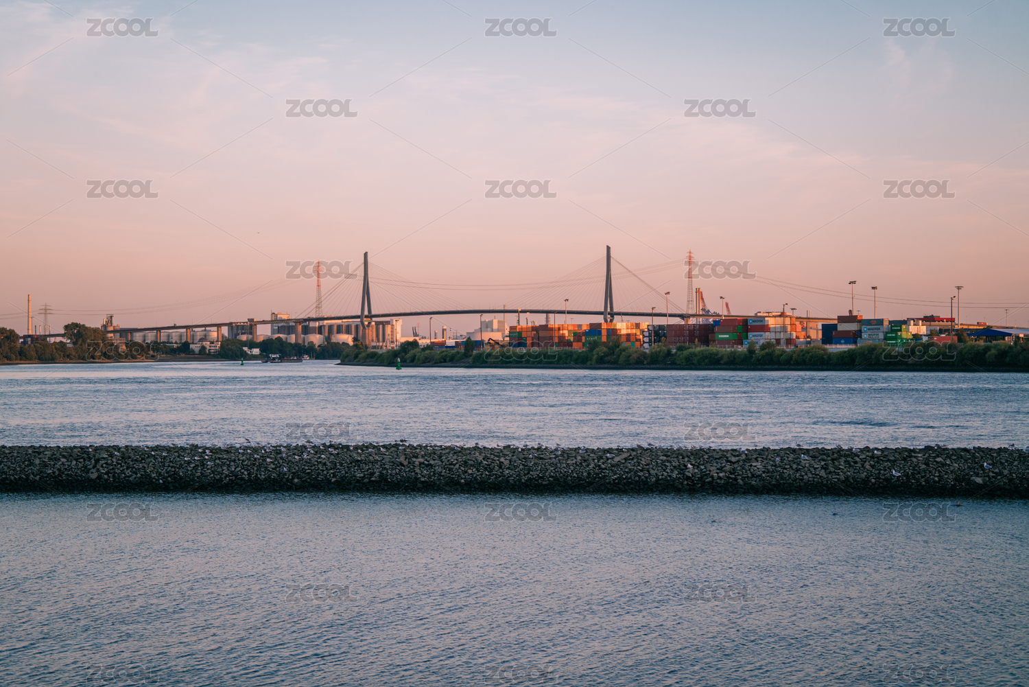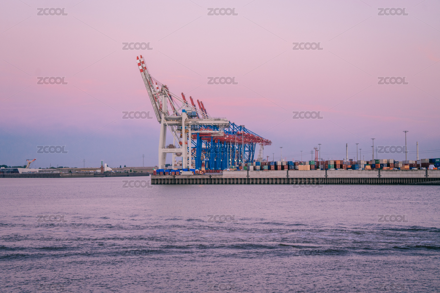 夕陽下的城市海港工業(yè)區(qū)風(fēng)光拍攝于德國漢堡