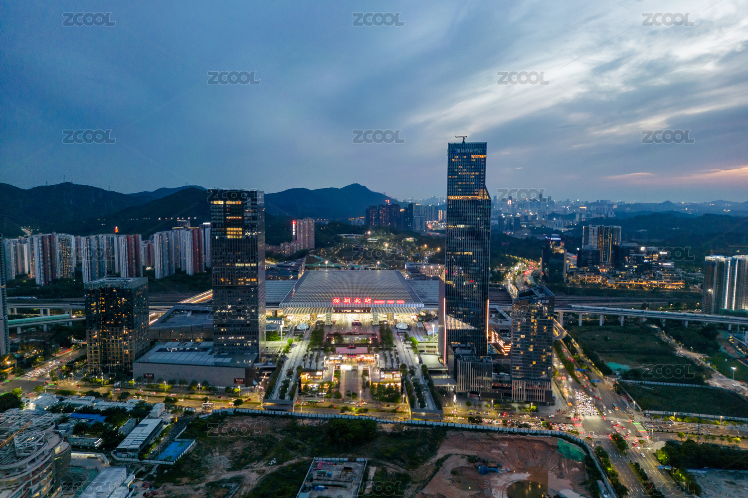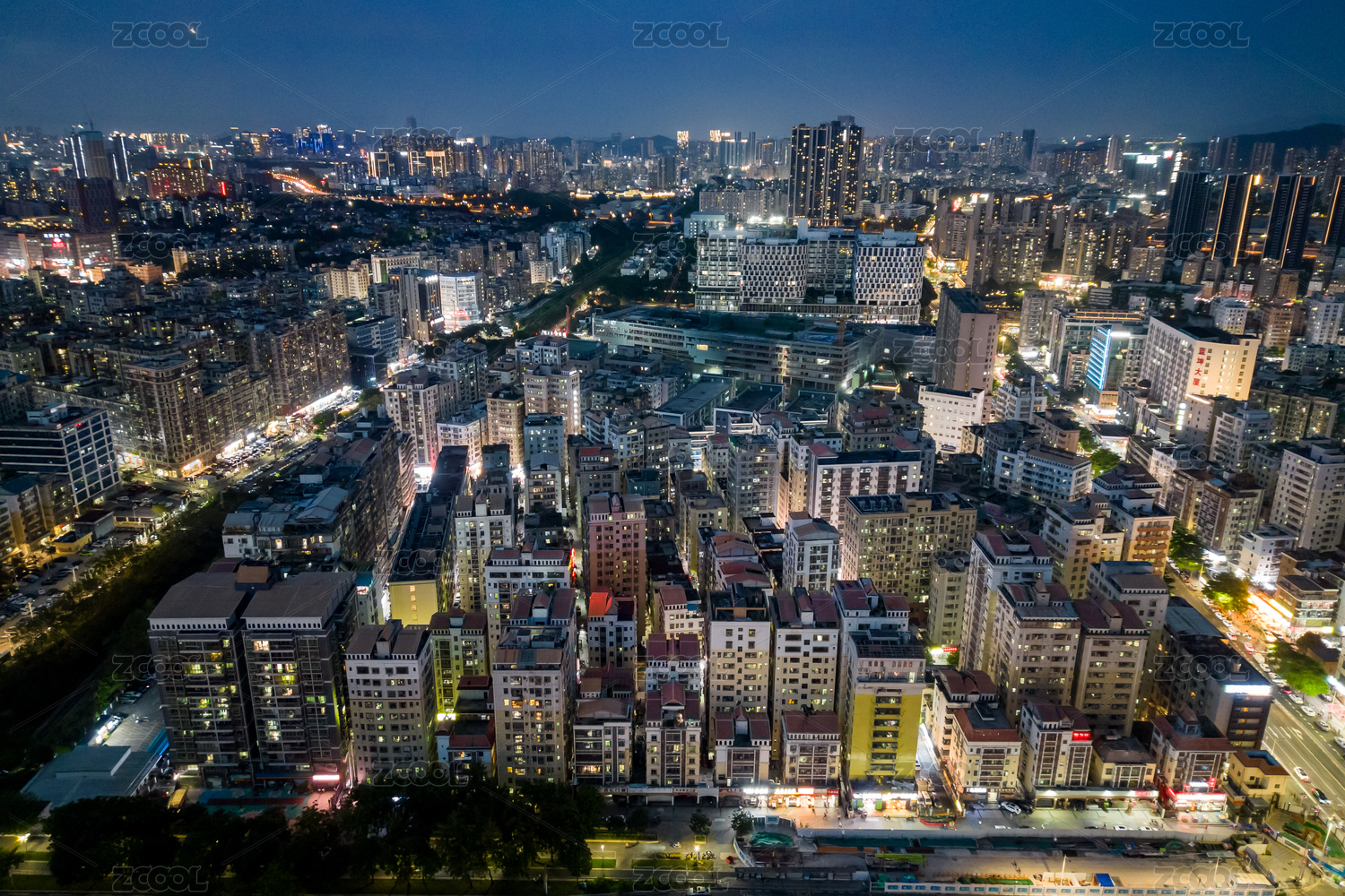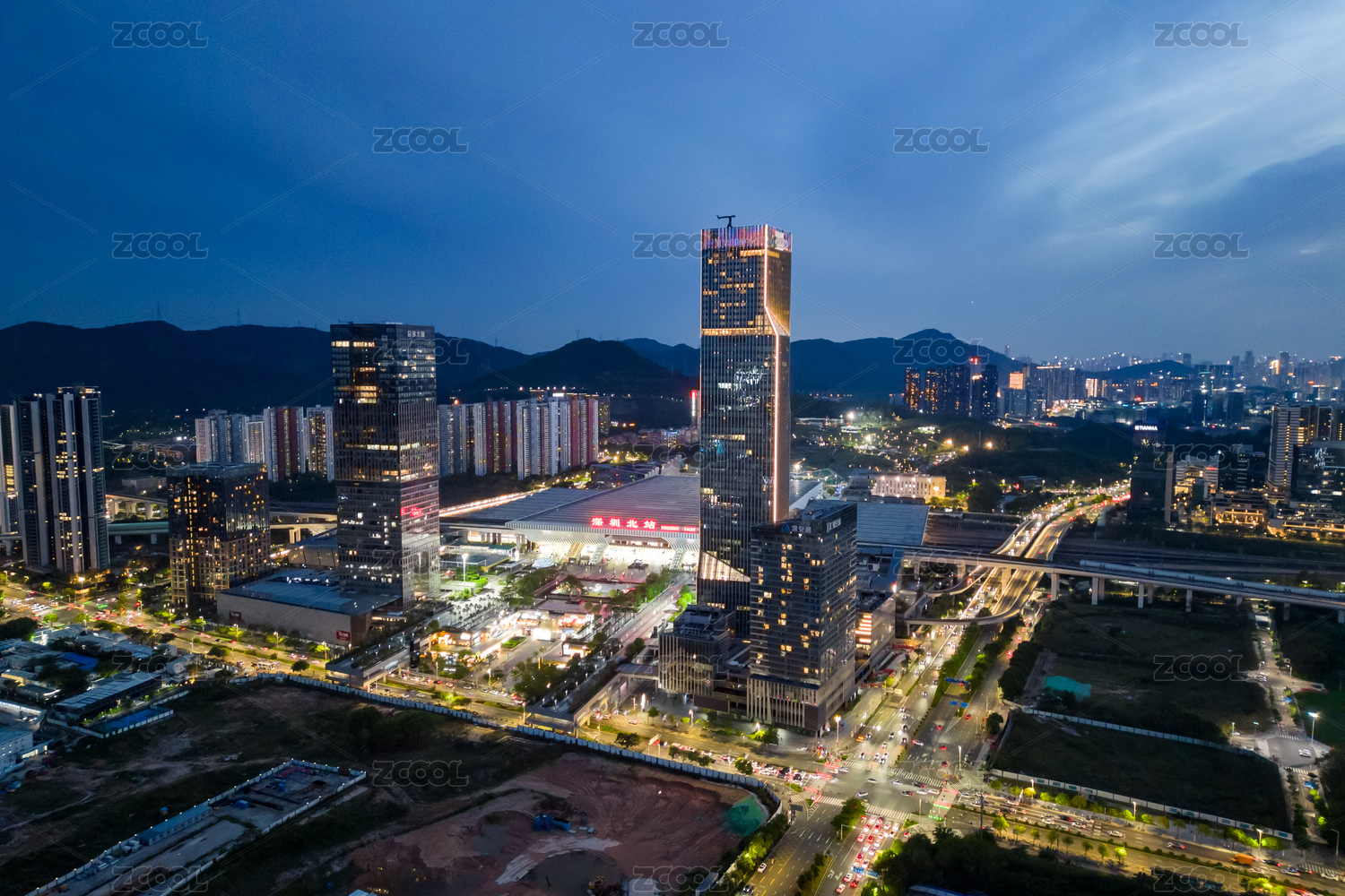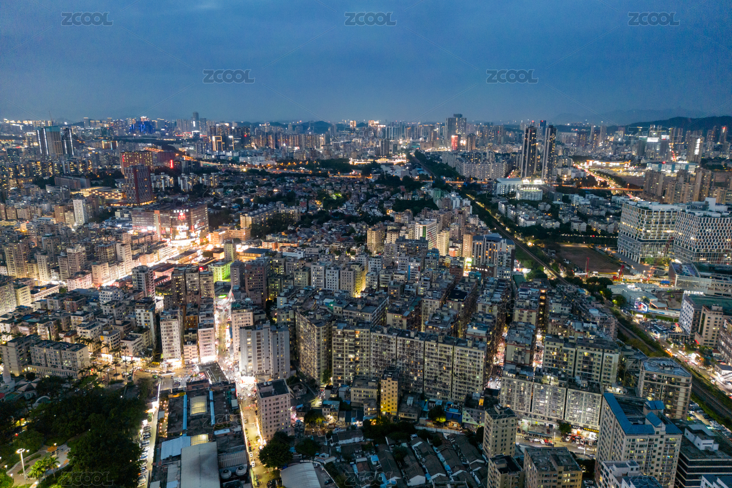 深圳市龍華區(qū)民治街道航拍夜景藍調