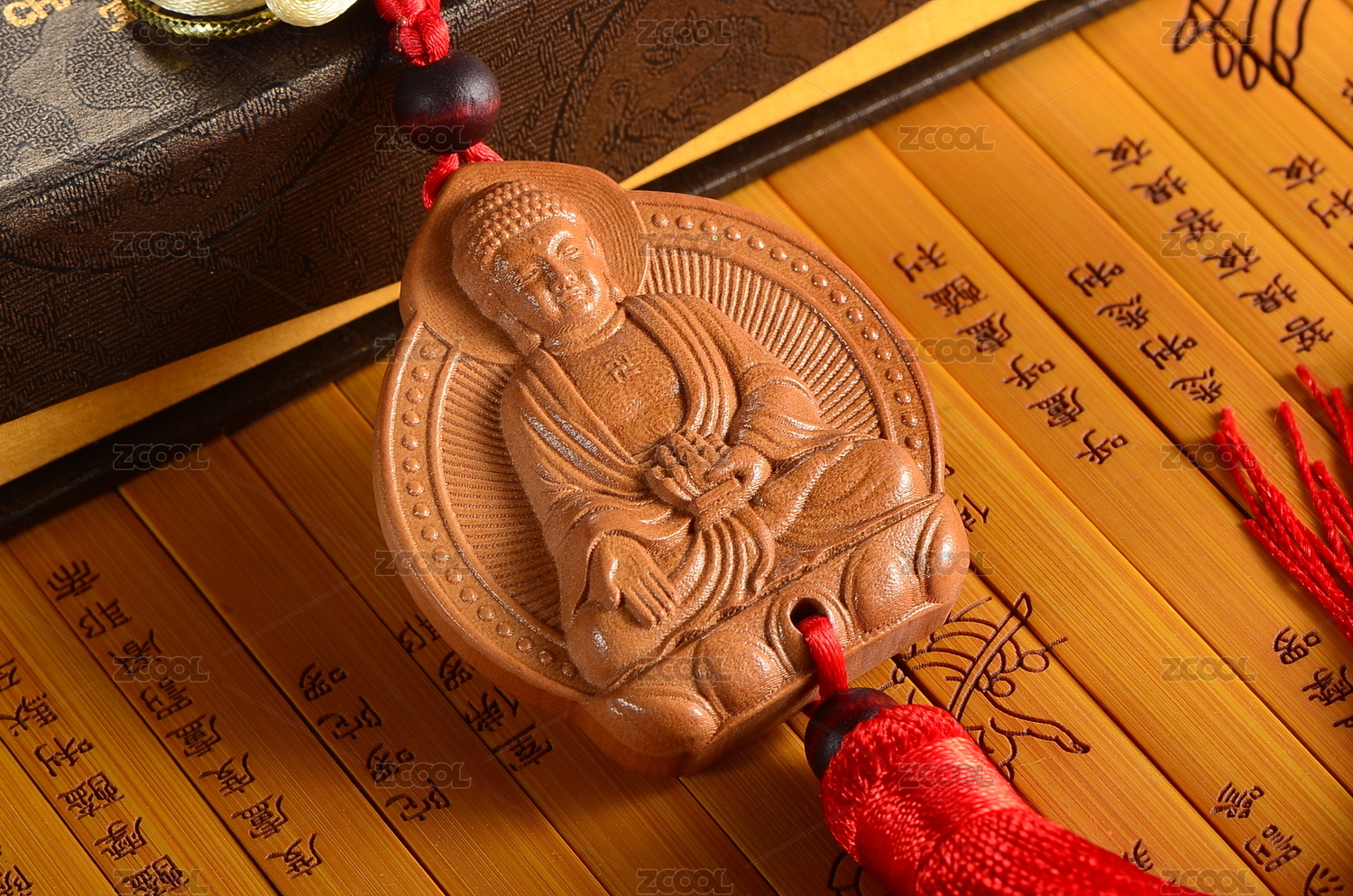 心經(jīng)竹簡背景上的阿彌陀佛像桃木汽車掛件