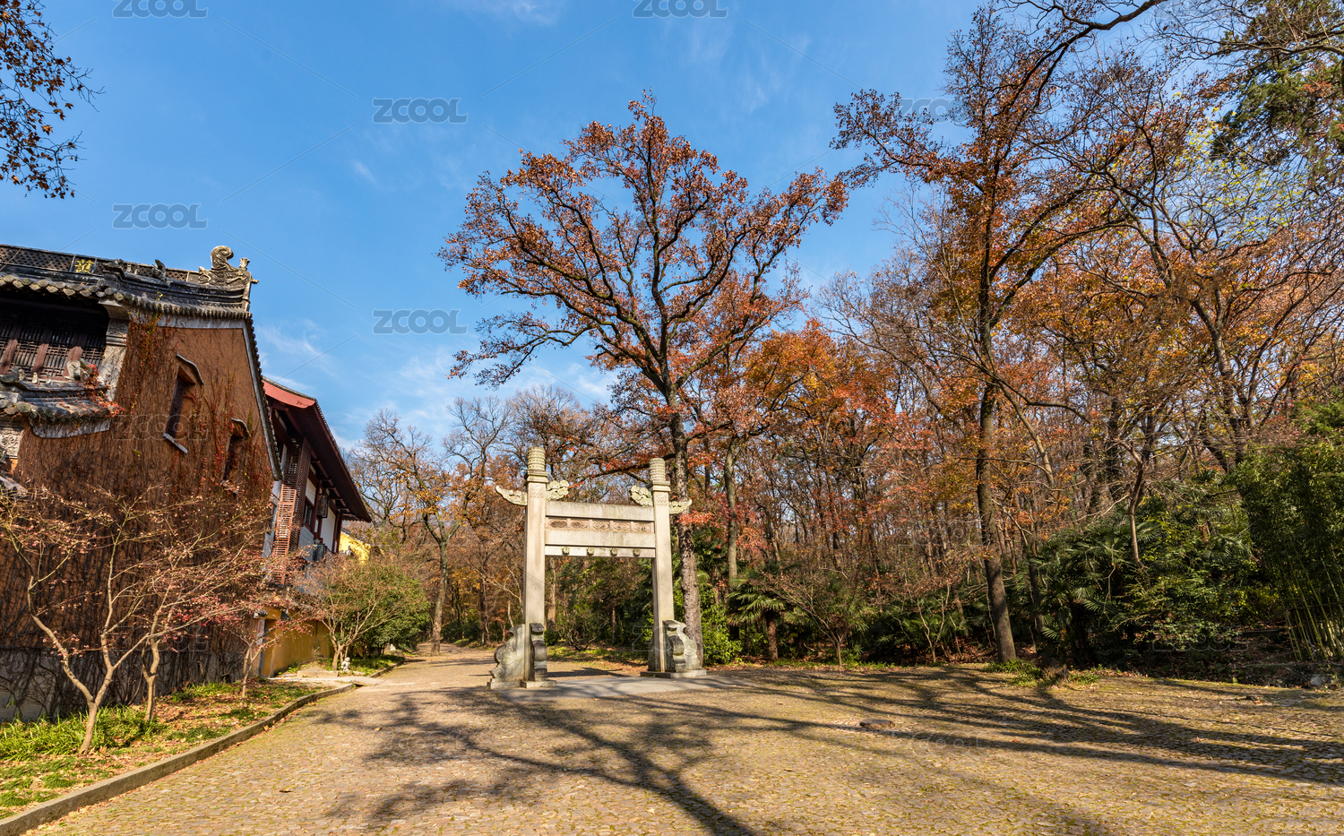 浙江省舟山市普陀山寺廟園林建筑景官屋檐黃墻