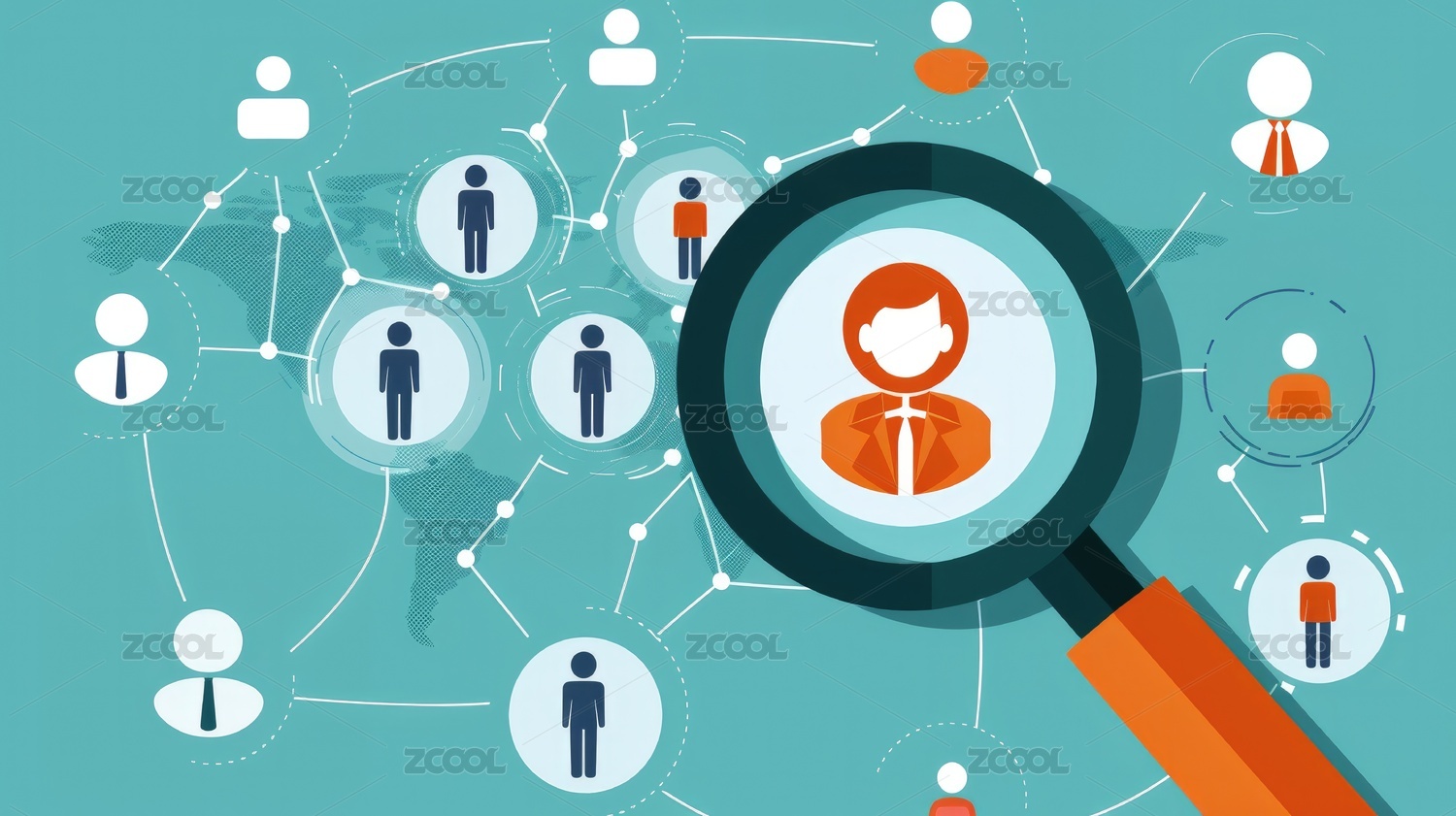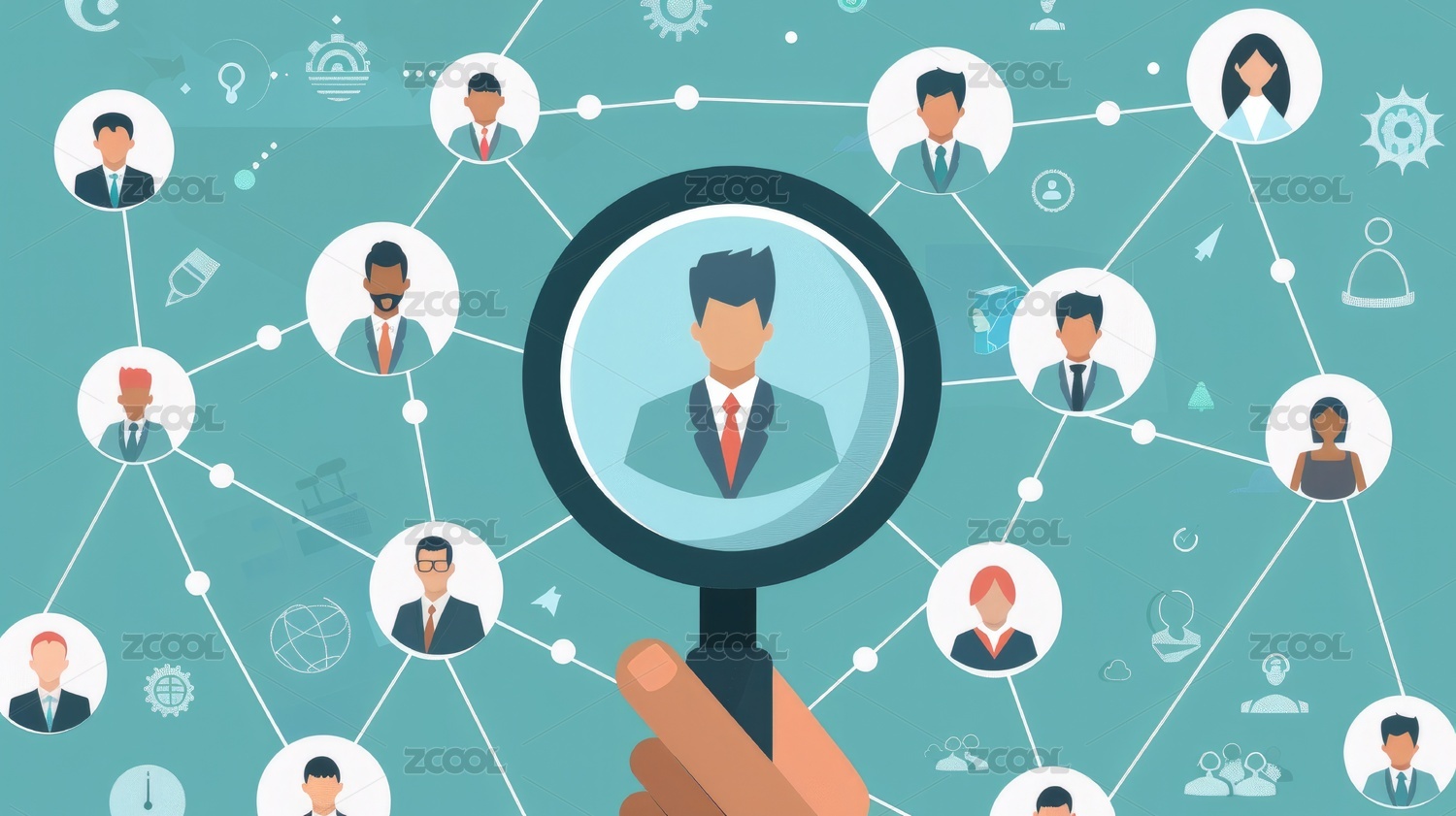 放大鏡聚焦在員工圖標上