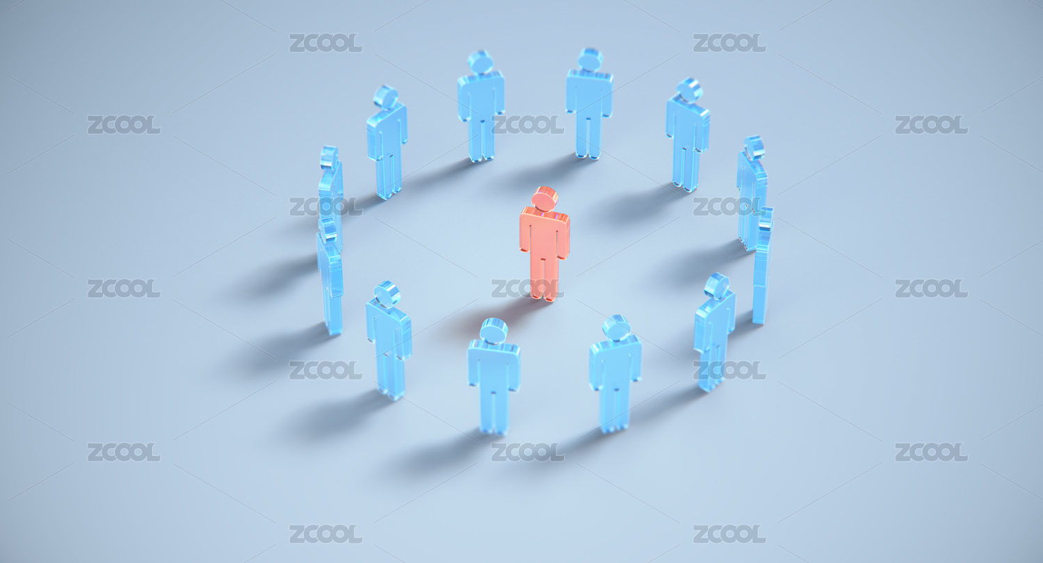 人際關(guān)系,團隊協(xié)作和領(lǐng)導力的三維概念渲染圖。