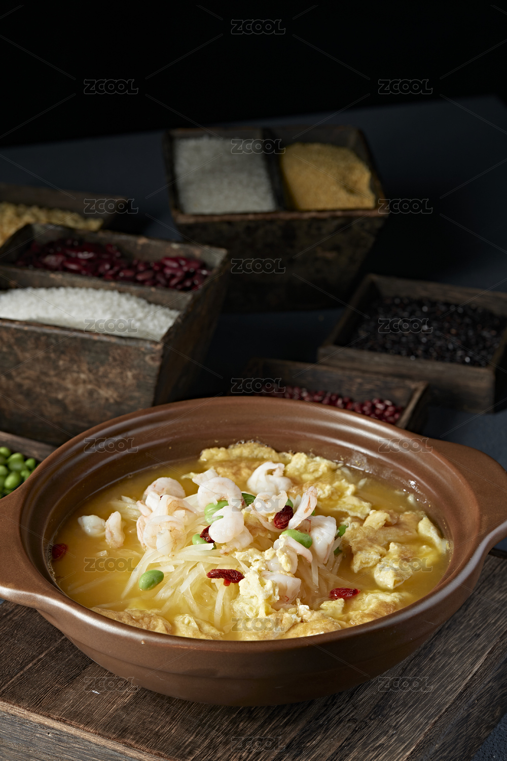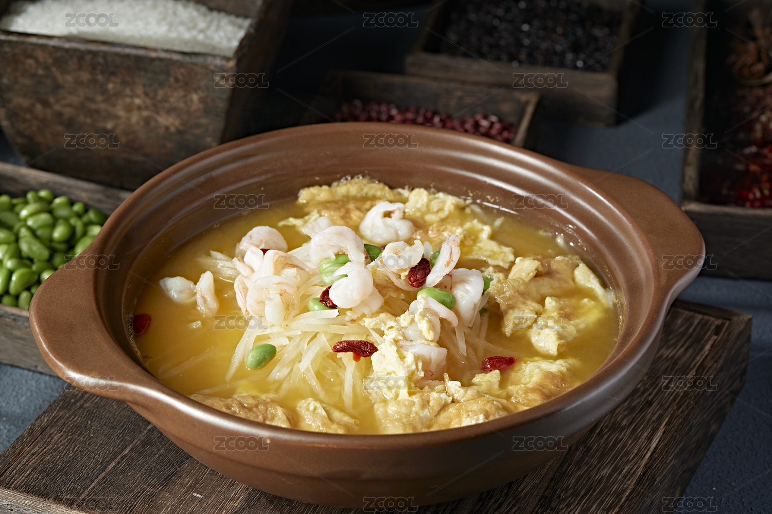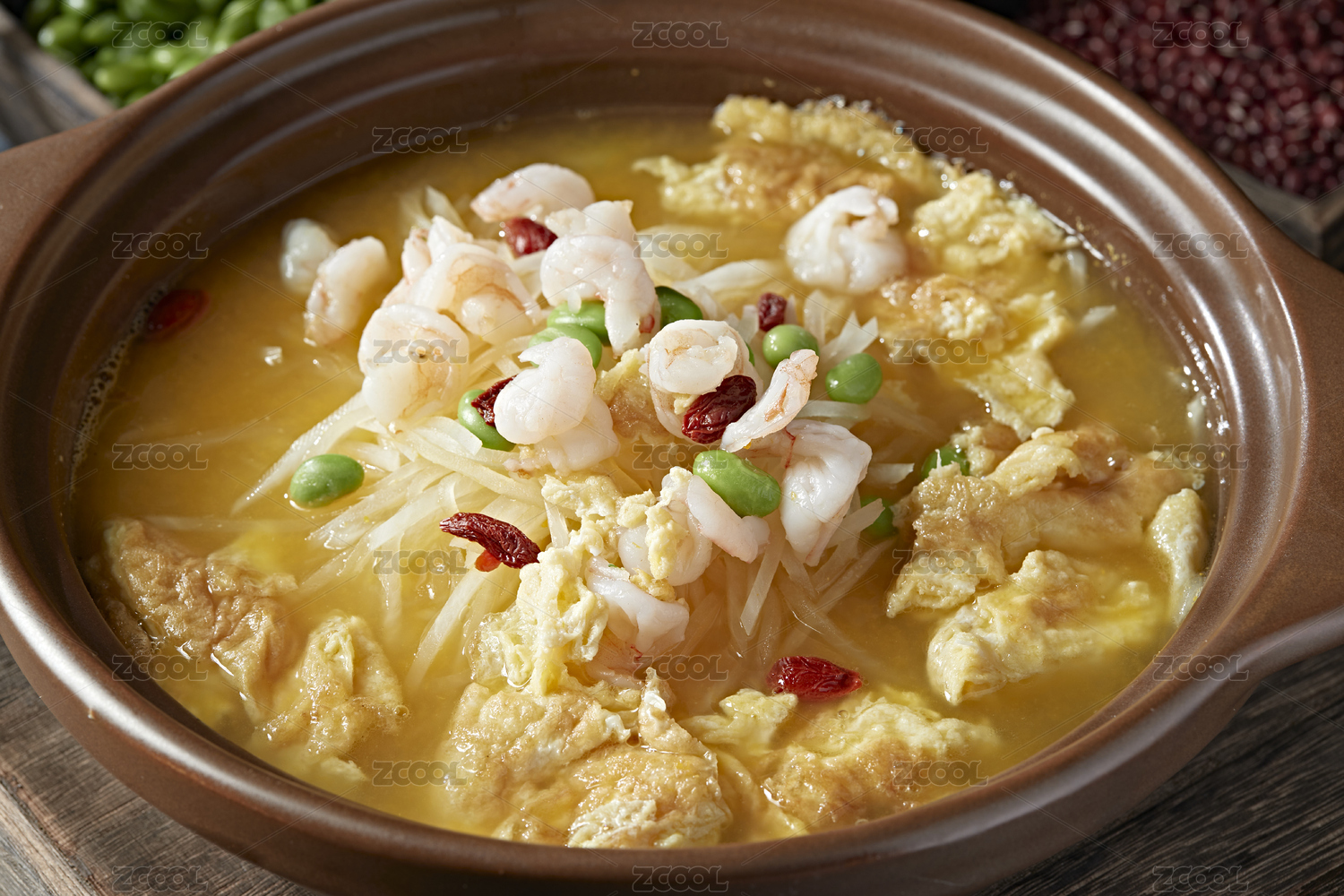 養(yǎng)生滋補(bǔ)石鍋酸湯水煮煎蛋枸杞蘿卜絲蝦仁