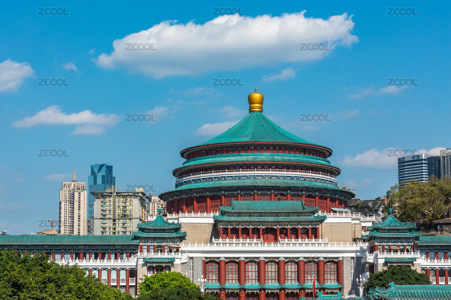 藍(lán)天白云下的重慶人民大禮堂