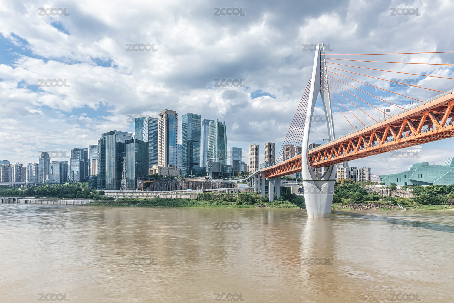 中國重慶城市建筑和橋梁與河流景觀