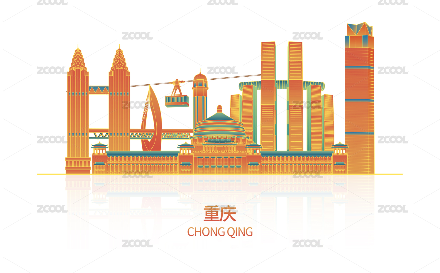 城市地標(biāo)建筑群扁平插畫重慶