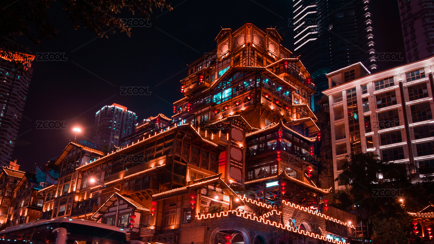 中國重慶市洪崖洞建筑夜景