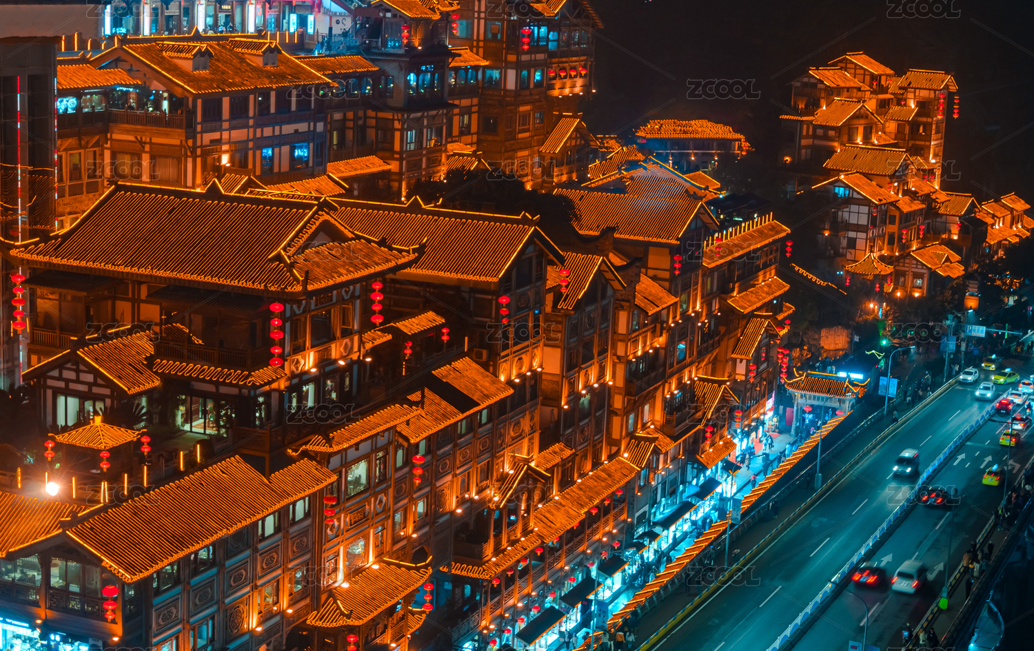 重慶洪崖洞民俗文化景區(qū)傳統(tǒng)中式建筑夜景