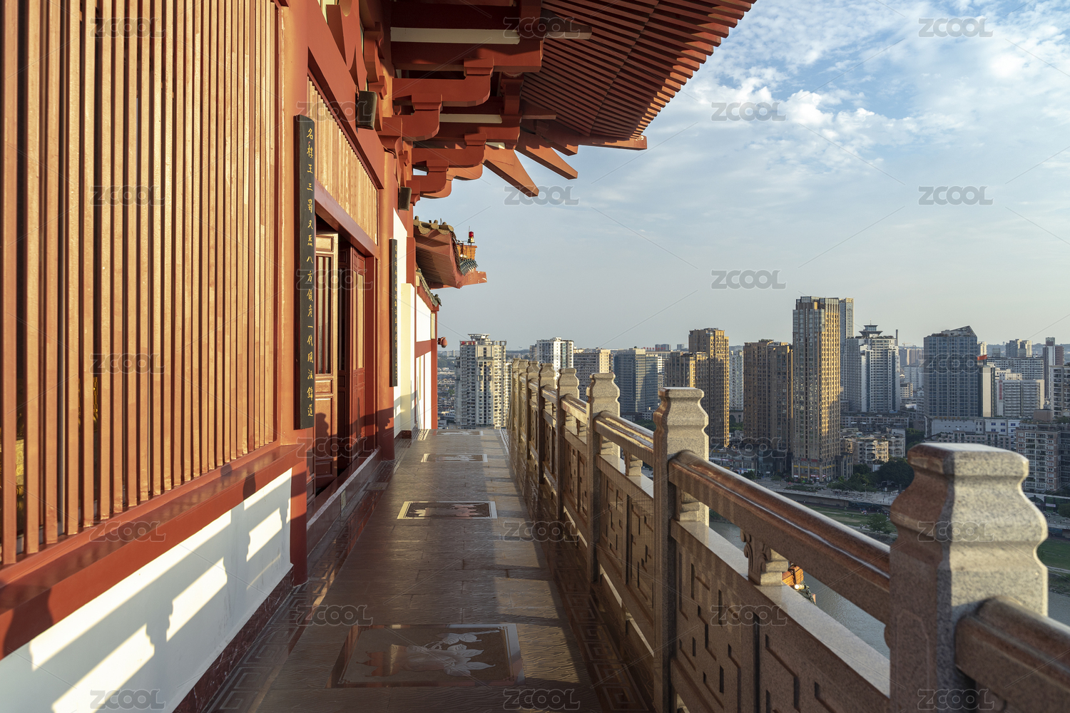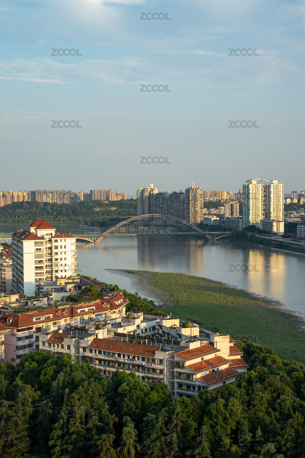 中國四川省綿陽市越王樓上看城市天際線