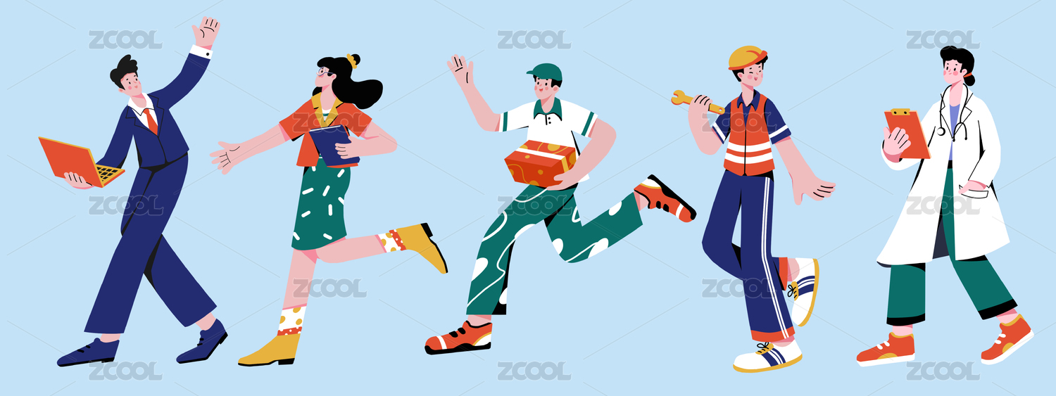 勞動節(jié)各行職業(yè)人物卡通元素