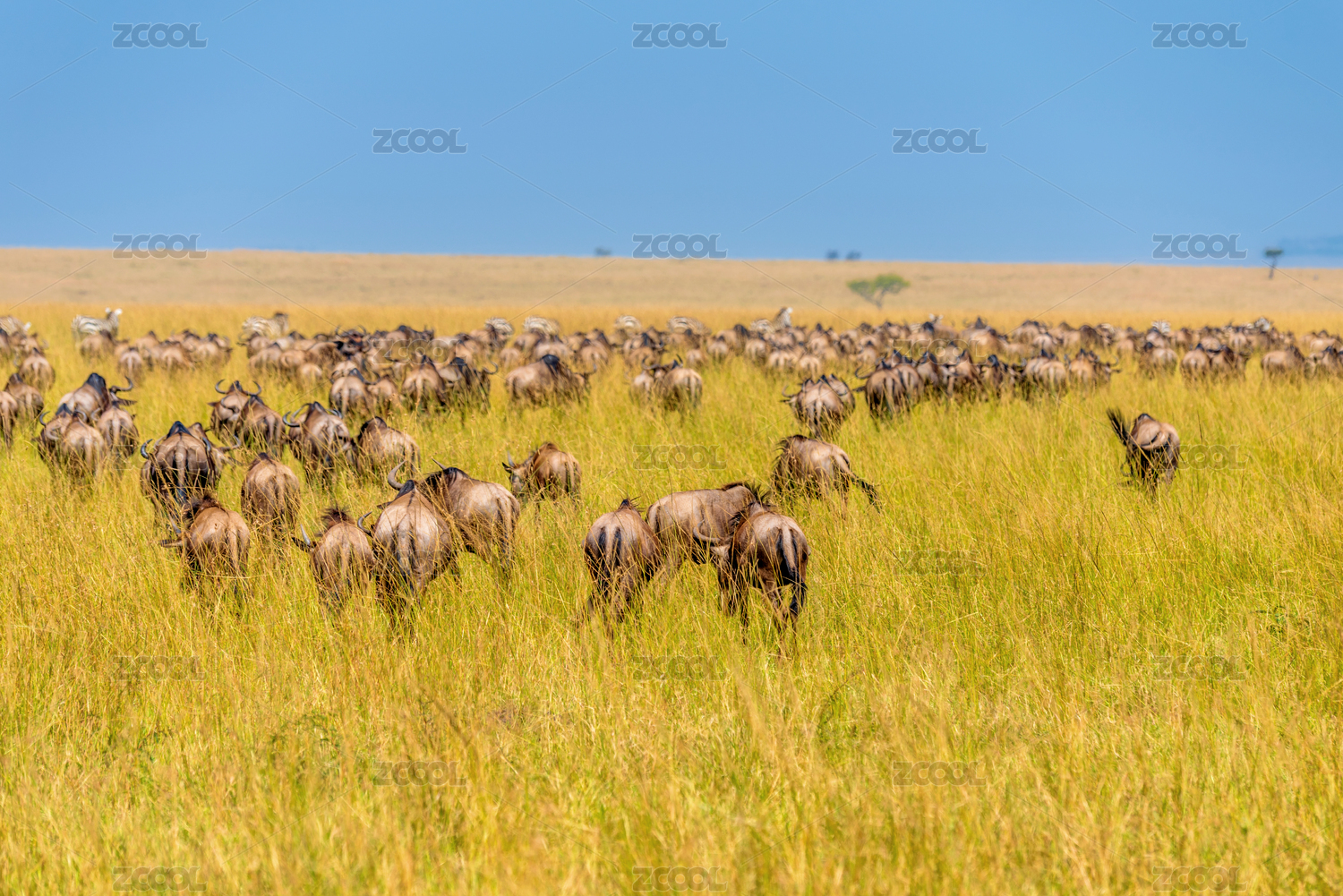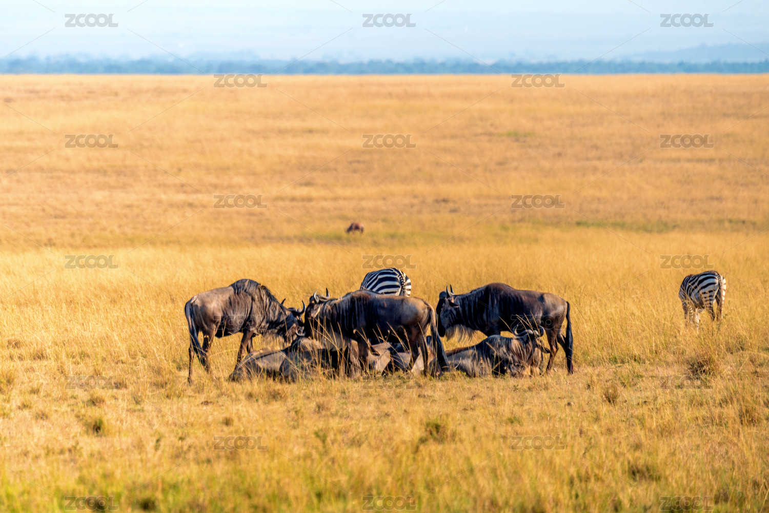 非洲肯尼亞馬賽馬拉草原上遷徙的斑馬和角馬
