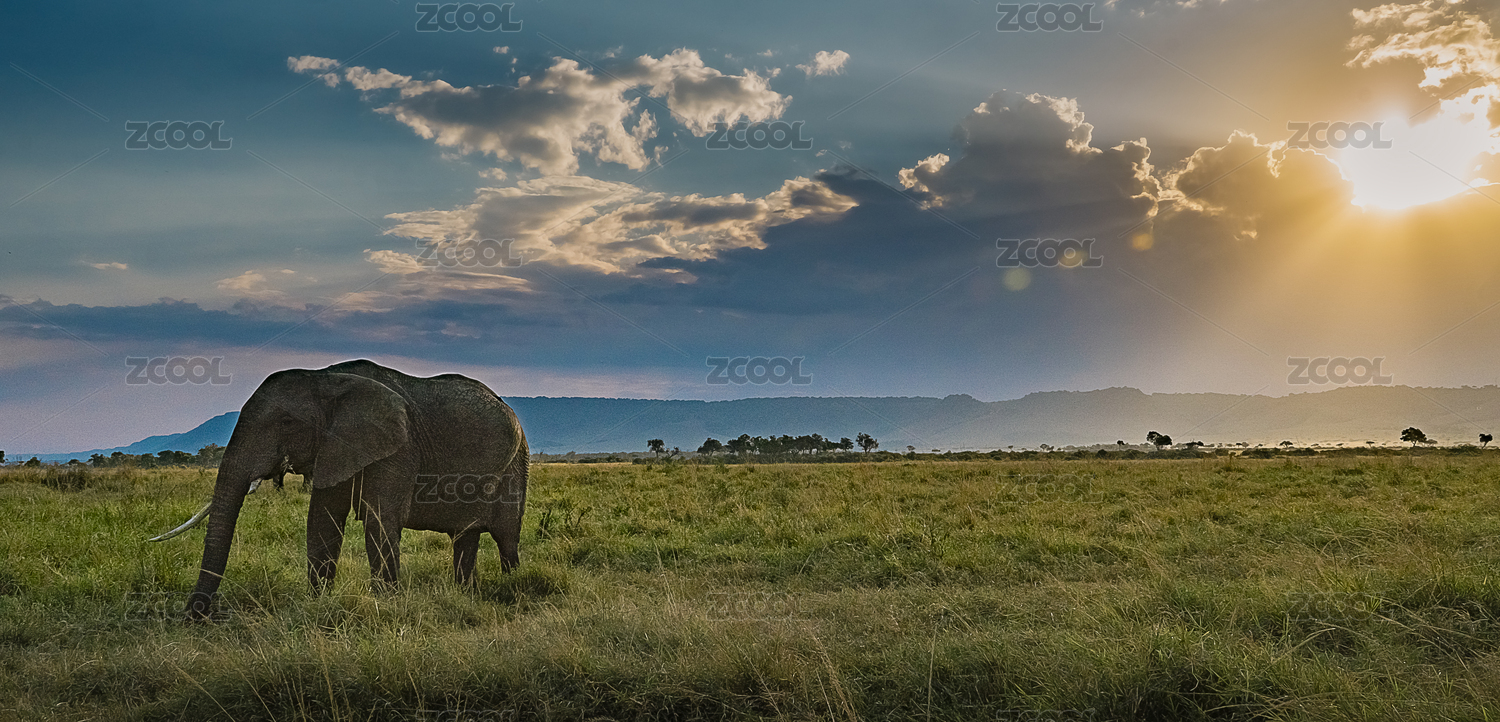 馬賽馬拉草原日落伴隨大象