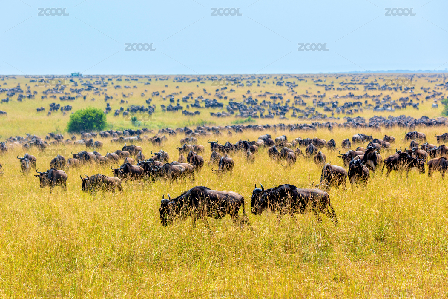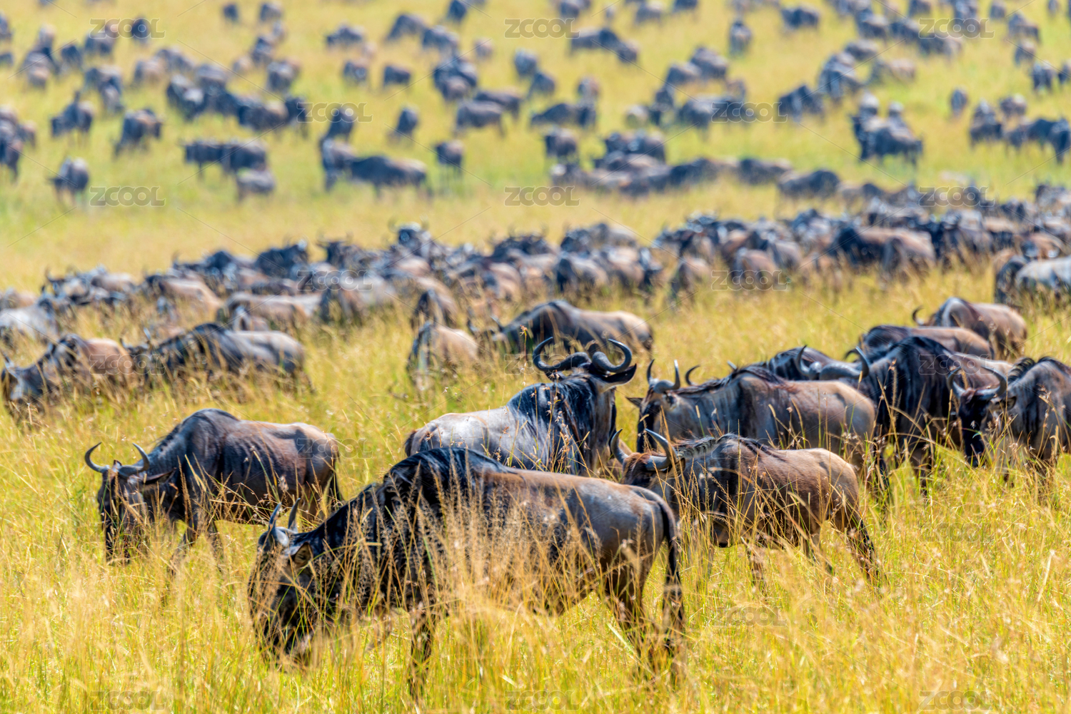非洲肯尼亞馬賽馬拉草原角馬遷徙的壯麗景象