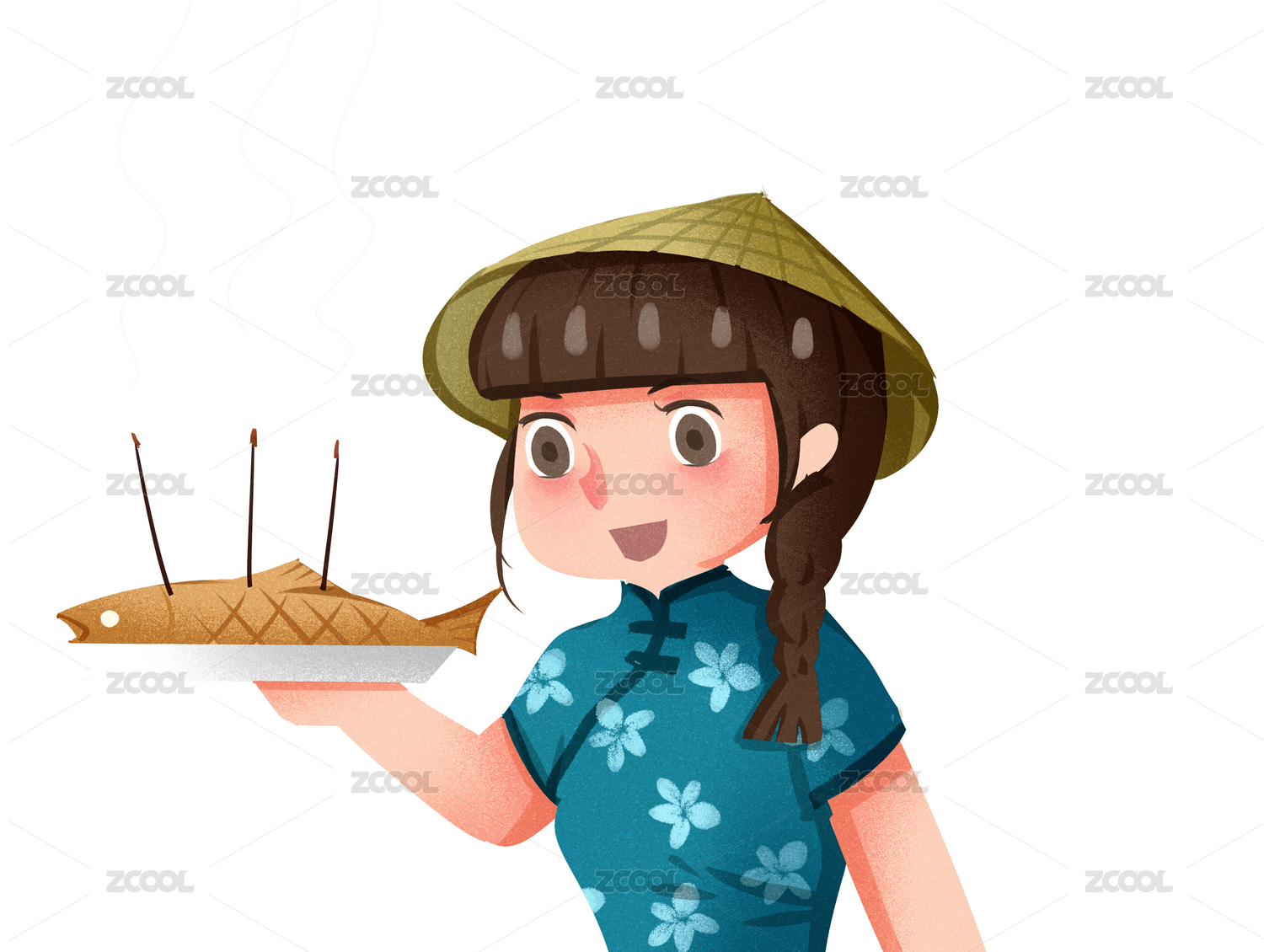 小清新風(fēng)格女孩做菜肴插畫人物元素