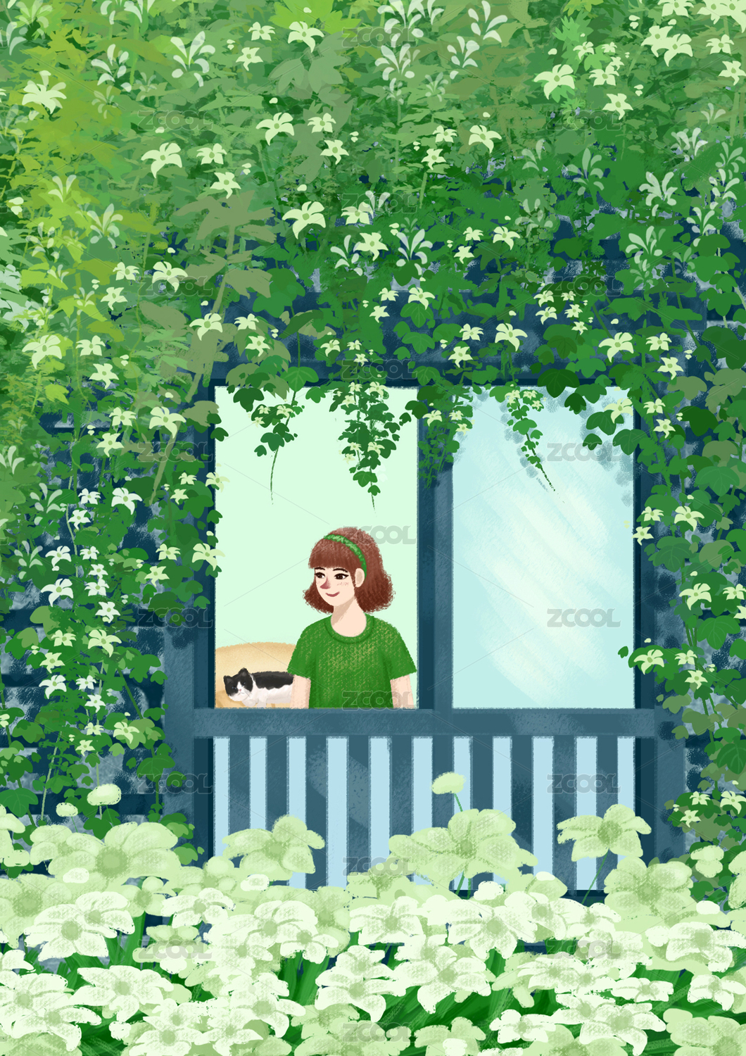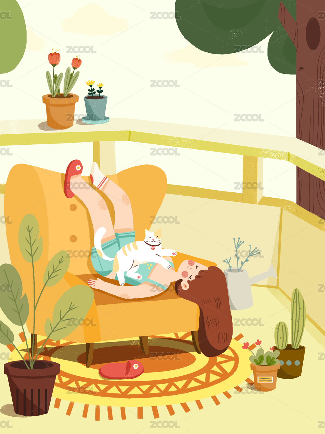 扁平風(fēng)極簡(jiǎn)裝飾插畫(huà)午后綠植陽(yáng)臺(tái)